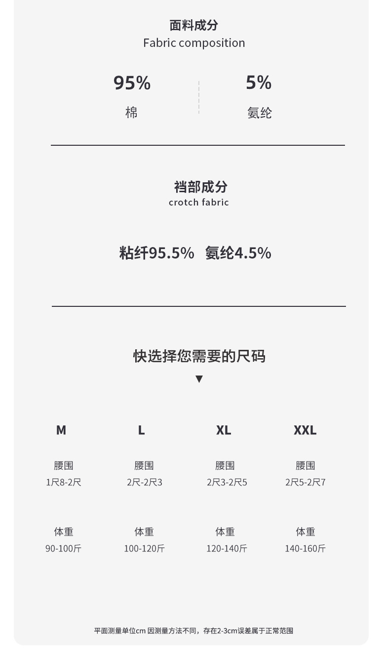 クロッチ裏地の成分含有量 95% (含む) ~ 100% (含まない)