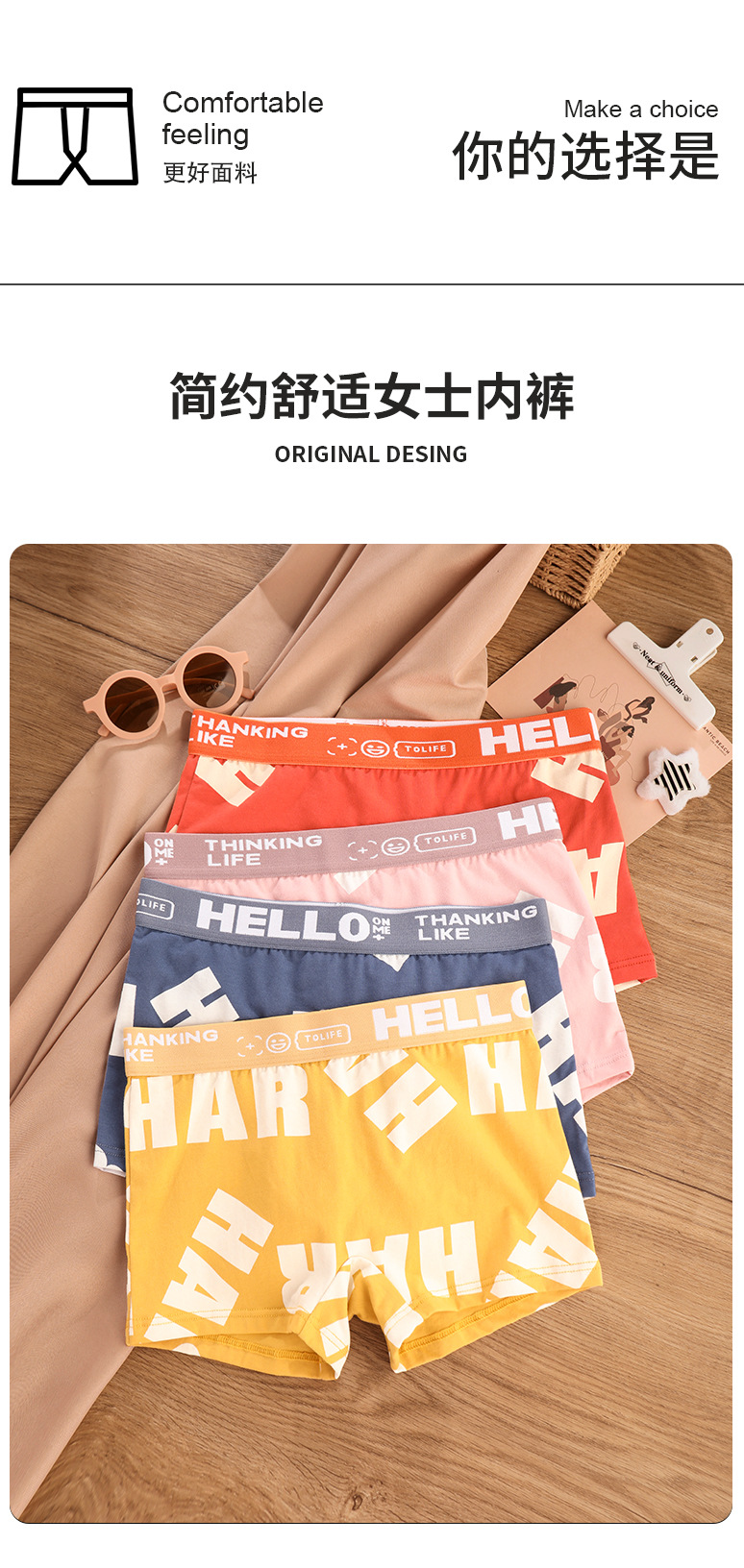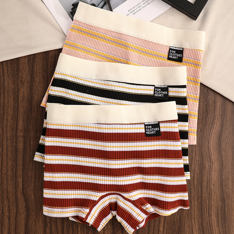 女士平角棉内裤软糯亲肤条纹透气居家舒适个性中腰打底少女安全裤
