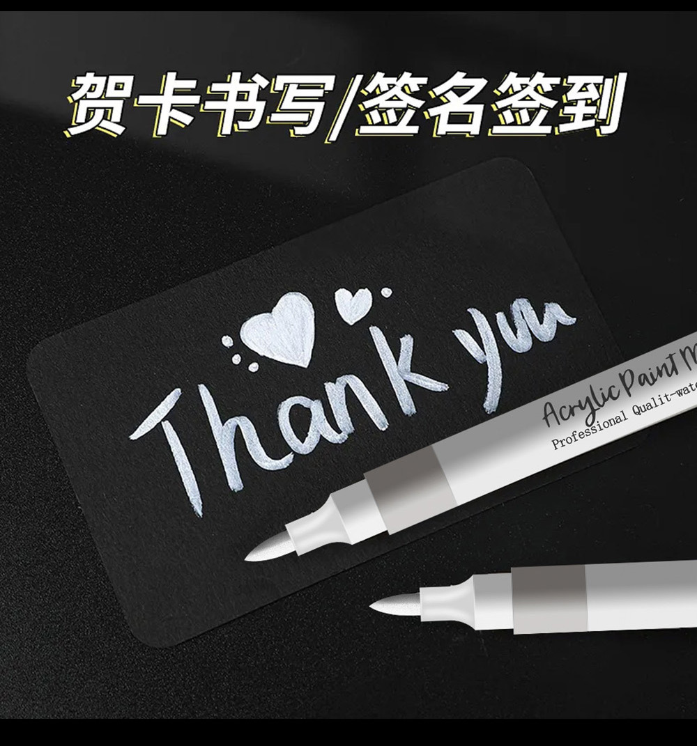 ホワイト高光沢アクリルペン速乾性防水非退色マーカーペン強力なカバー力学生マーキング落書きマーカーペン