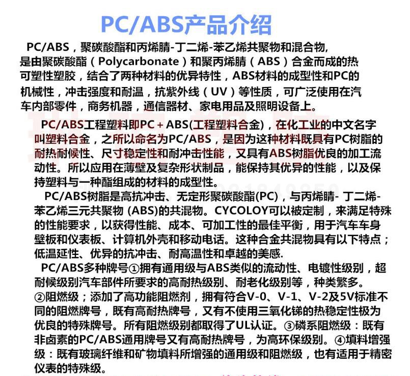 Pc/abs粒子台湾奇美PC-540高光沢高剛性自動車電子電気機器応用合金プラスチック