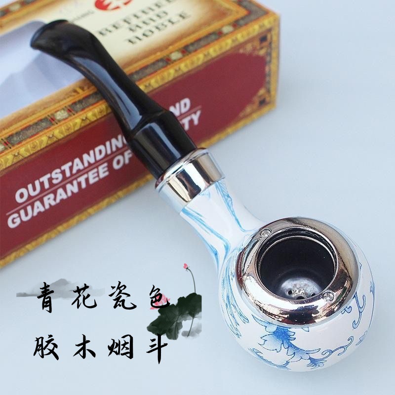 中国風の楕円形の青と花の磁器の色のゴムの木のパイプの経典の曲がった式の干ばつのパイプの鉄鍋のパイプ