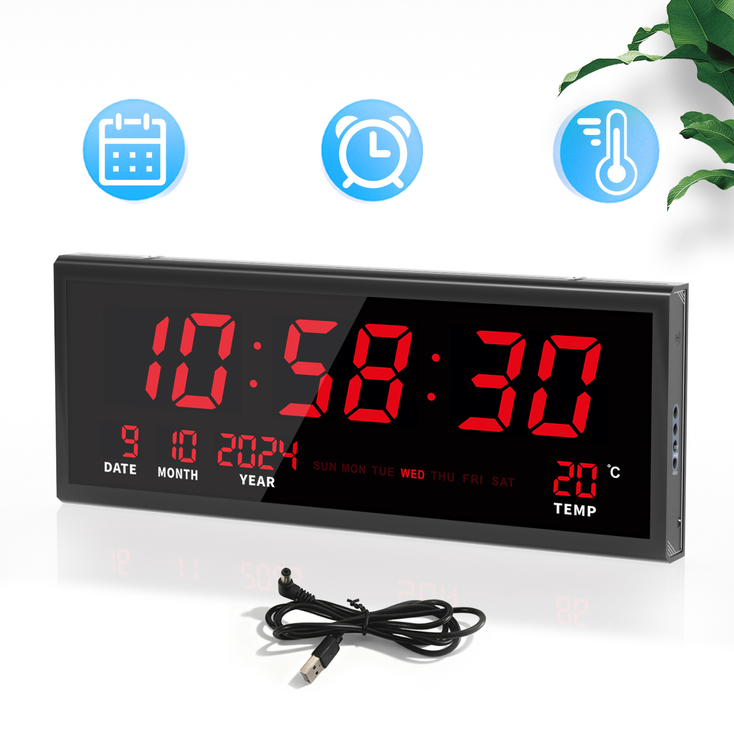 クロスボーダー電子時計大画面壁掛け家庭用万年暦シンプル時計スマートLEDデジタル温度時計