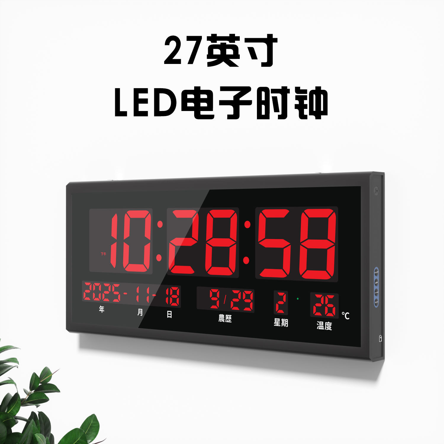 27英寸中文版内销led电子时钟客厅挂钟数字农历挂墙大屏自动对时