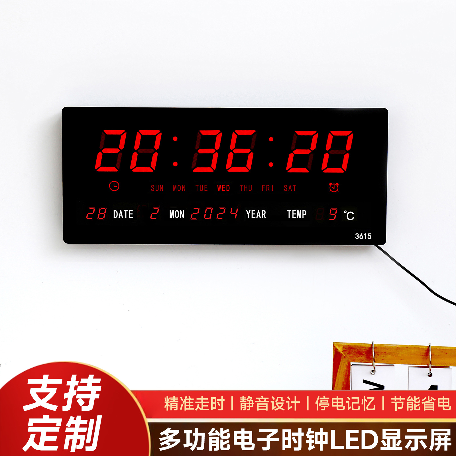 国境を越えて人気の高いLED電子時計、シンプルな大画面、多機能永久カレンダー、デジタル表示壁掛け時計3604
