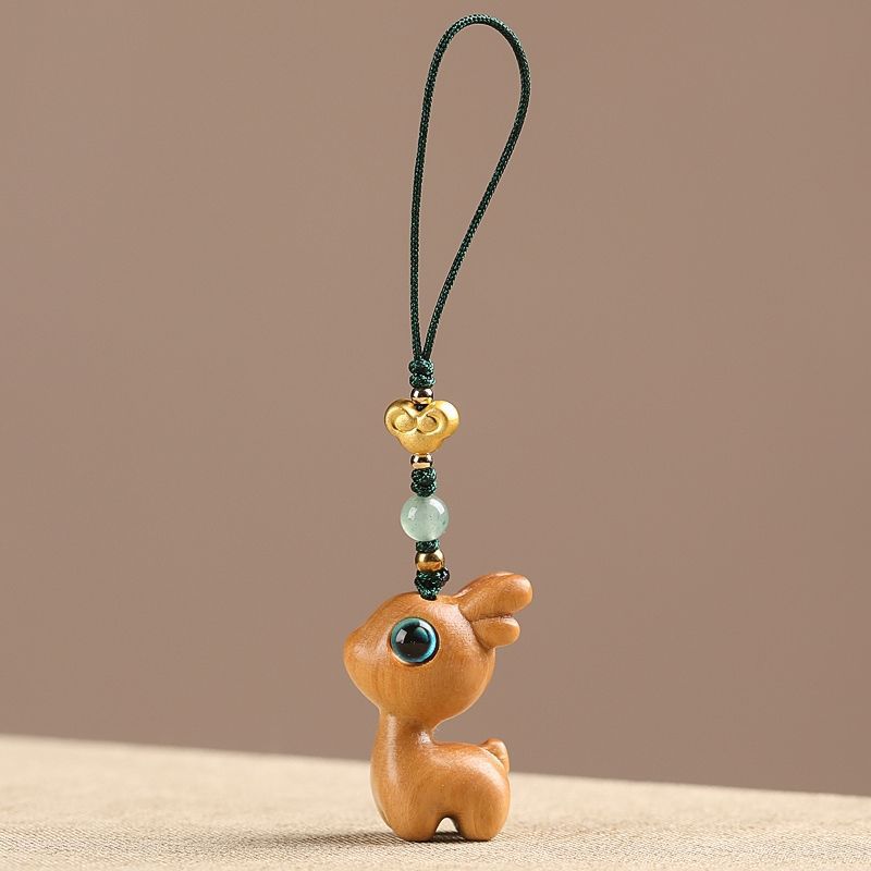 。優盤防失ストラップ一路檀木小鹿自動車キーホルダーかわいい男女カップル携帯電話