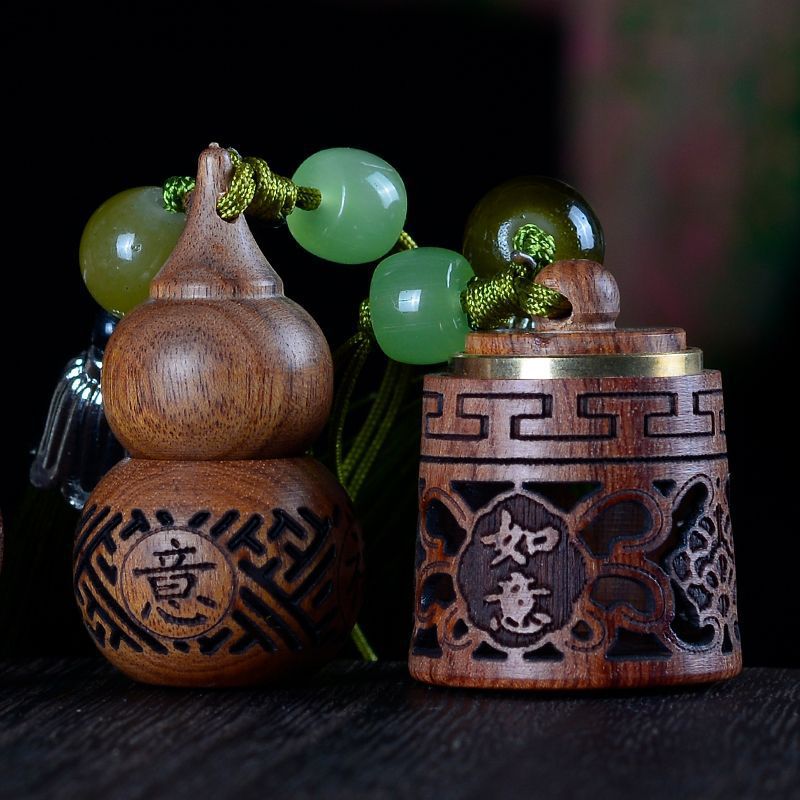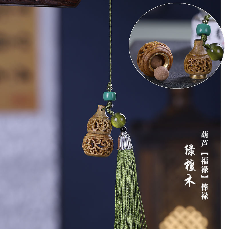 緑檀の透かし彫りの瓢箪の香の袋の木の拡香の瓶のペンダントの袋の箱の鍵のボタンのチェーンの男女の装飾の部品