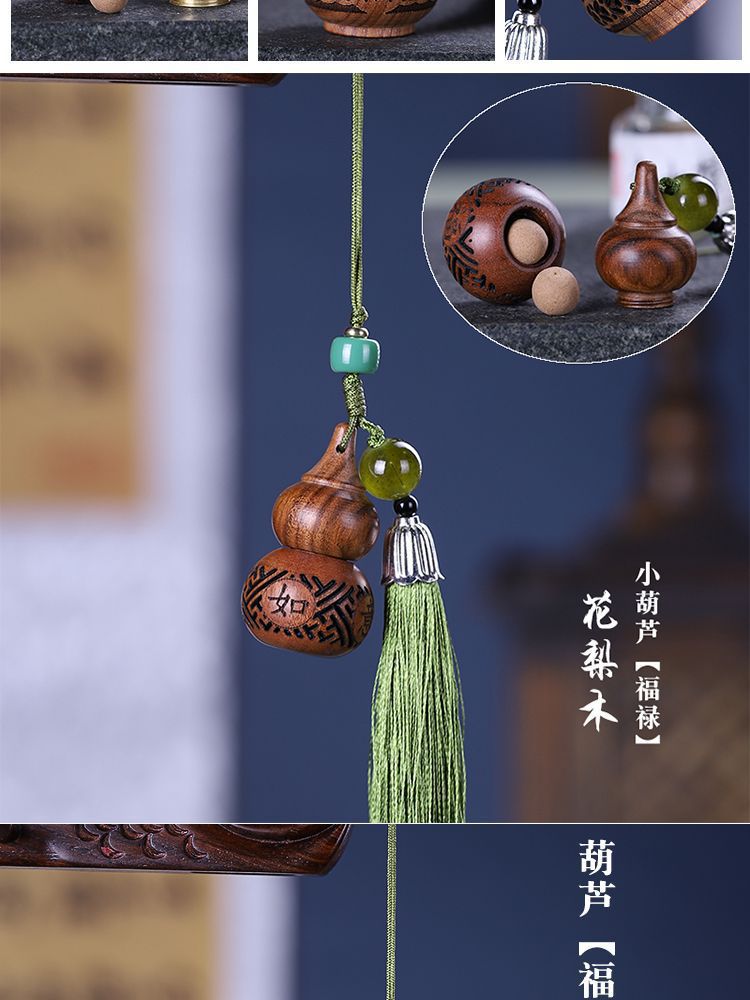 花梨木瓢箪香嚢拡香器寿如意透かし彫り宝瓶流蘇自動車ストラップ付き生放送商品