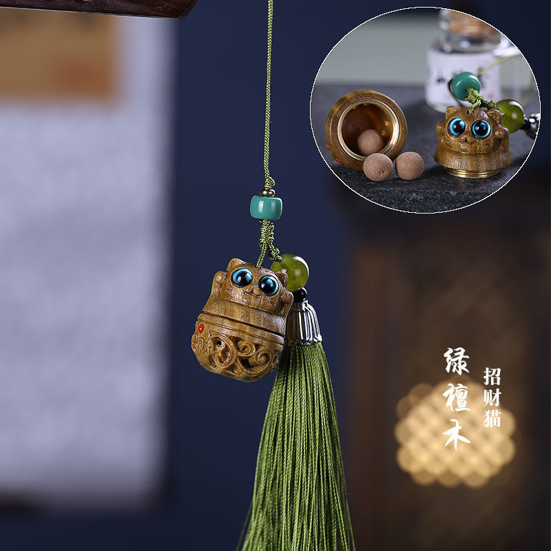 緑白檀の宝庫銅サシェ中空彫刻携帯電話バッグキーホルダーペンダント Douyin ライブブロードキャスト