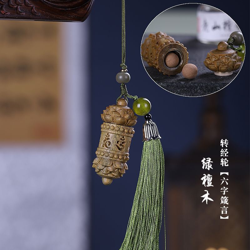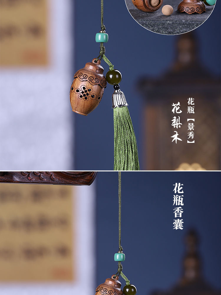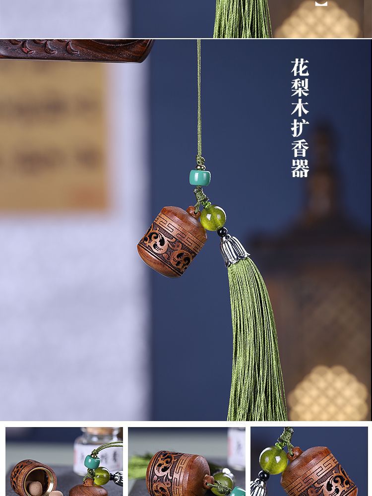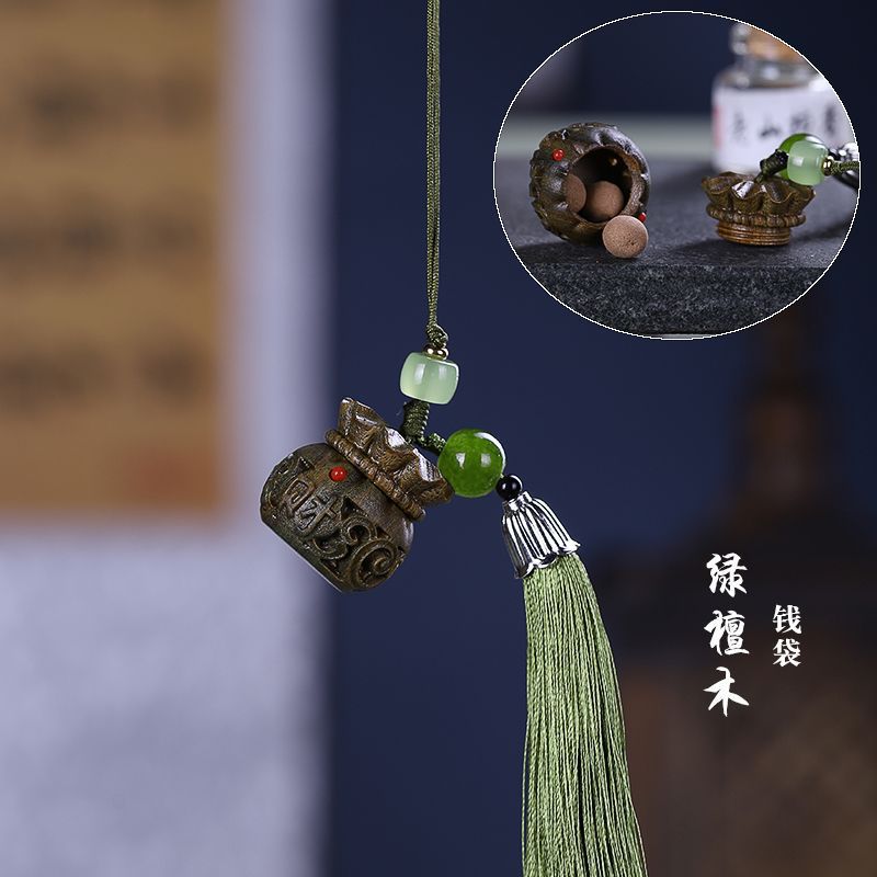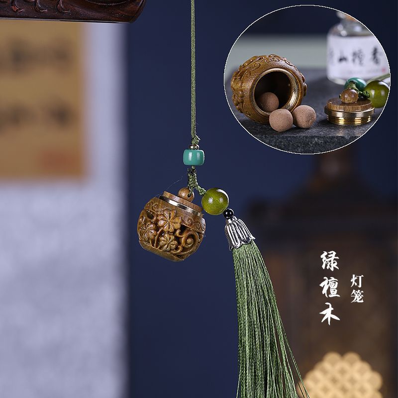 古風流蘇ストラップ緑檀木携帯香嚢球透かし彫りチャイナドレス圧襟飾り香丸球ペンダント拡香器
