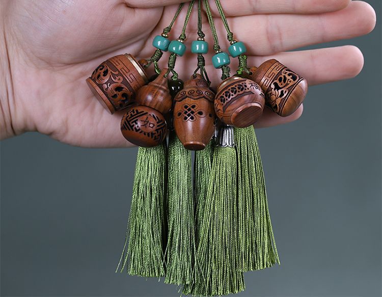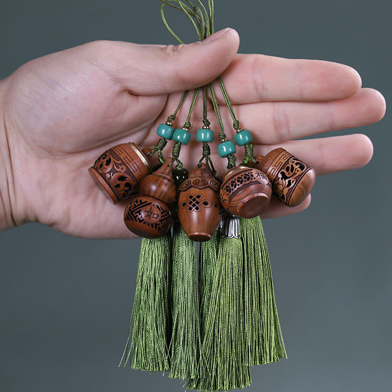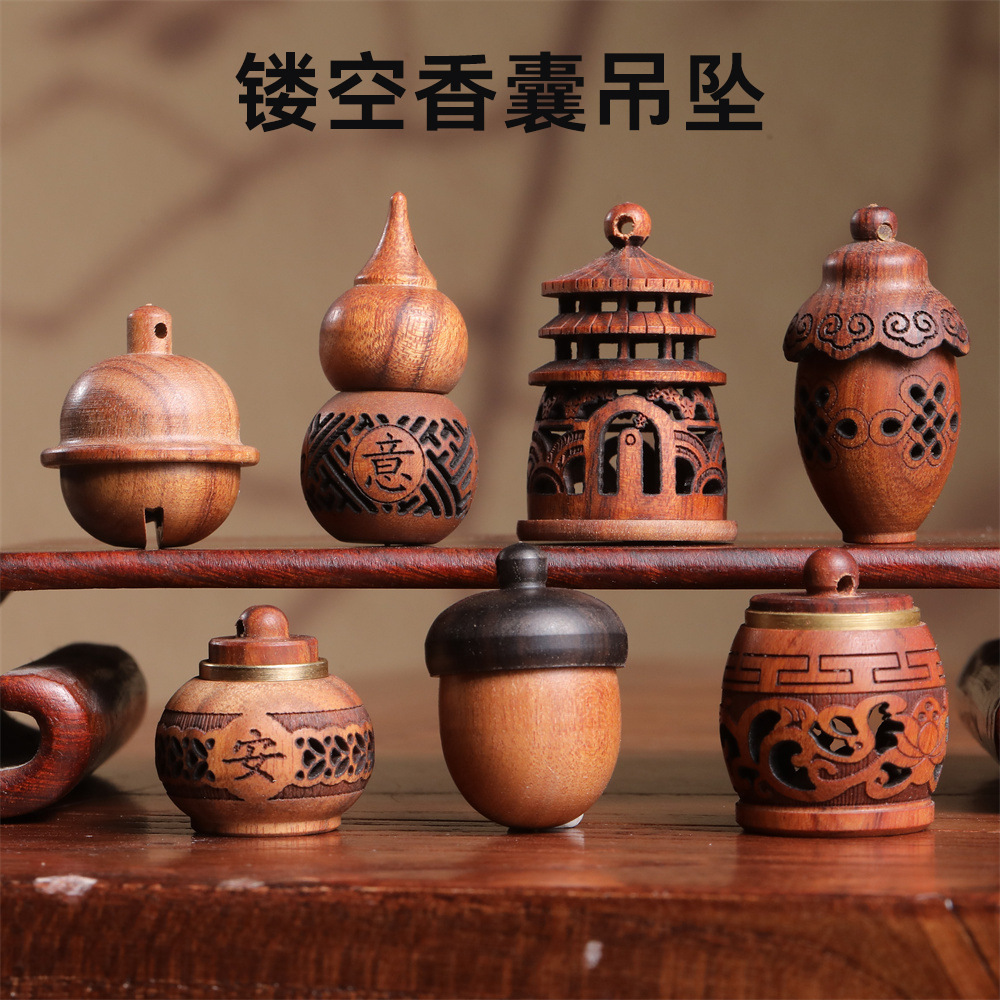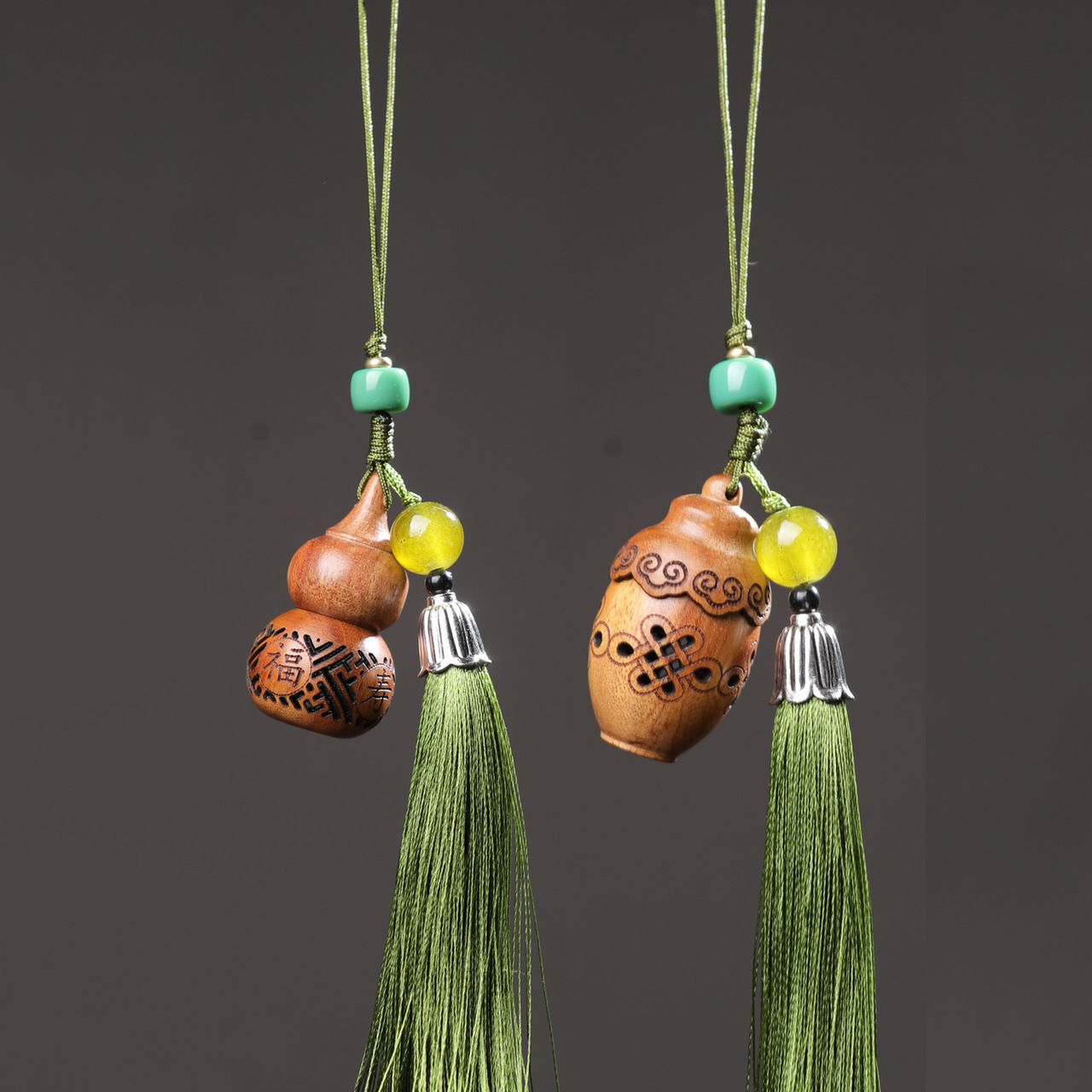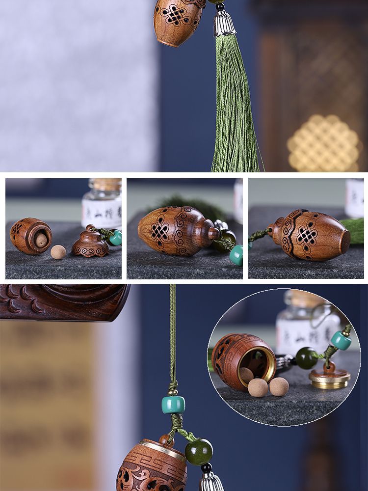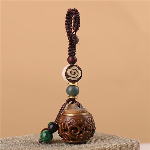 ペンダントキーホルダー、透かし彫り香袋飾り、個性的な鈴、木彫りディフューザー、ひょうたん型ペンダント