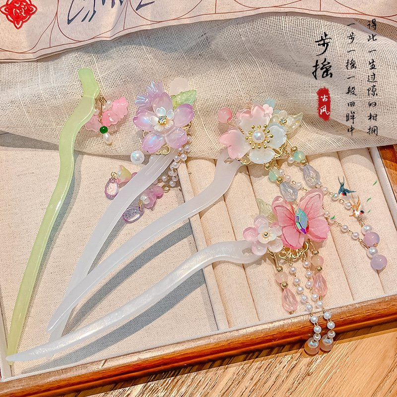 新しいスタイルの簪、古風漢服ヘアピン、古代衣装ヘアアクセサリー、中国風女の子用ブヨー流蘇ヘアピン、ヘアアクセサリー