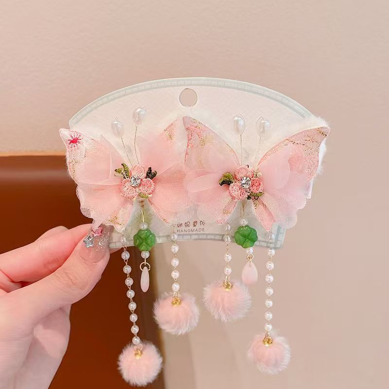 新しい髪飾り卸売り少女児童学生レース刺繍ぬいぐるみ蝶飾り真珠流蘇ベルベットヘアピン