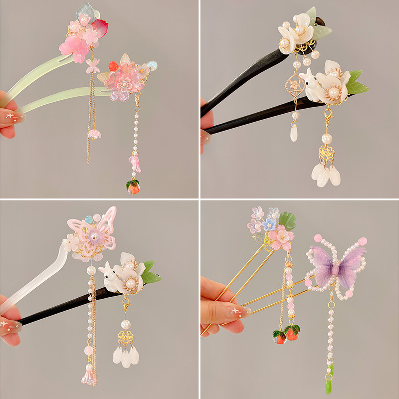 中国风汉服吊坠发钗女童发簪子女孩头饰配饰花朵儿童搭配古风流苏
