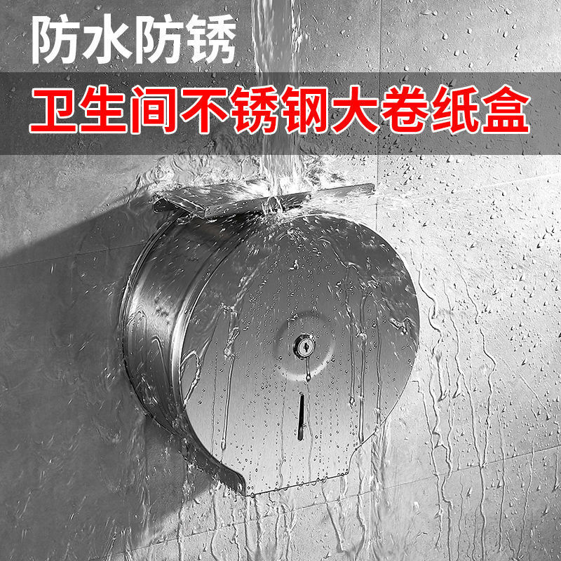 ステンレス製大ロールペーパーホルダー、トイレットペーパーホルダー、大ロールペーパーボックス、ペーパータオルホルダー、バスルーム用大型ペーパータオルボックス、壁掛け式、穴あけ不要