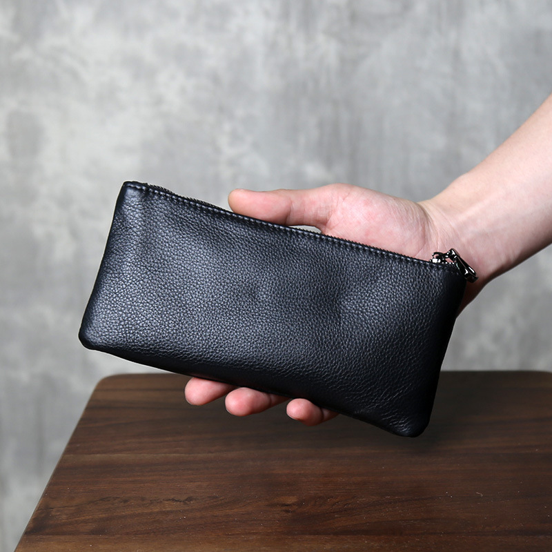 头层牛皮真皮包超薄长款大容量钱包男女拉链包简约钱夹手拿包软皮