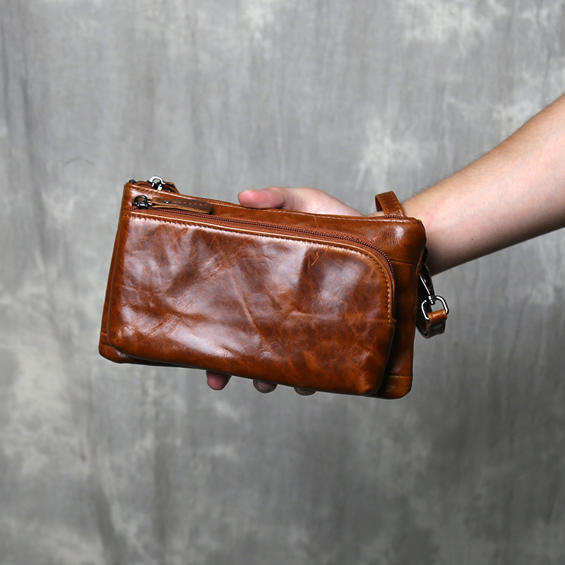 复古真皮男士手拿包油蜡头层牛皮休闲斜挎小包女做旧风格手机包