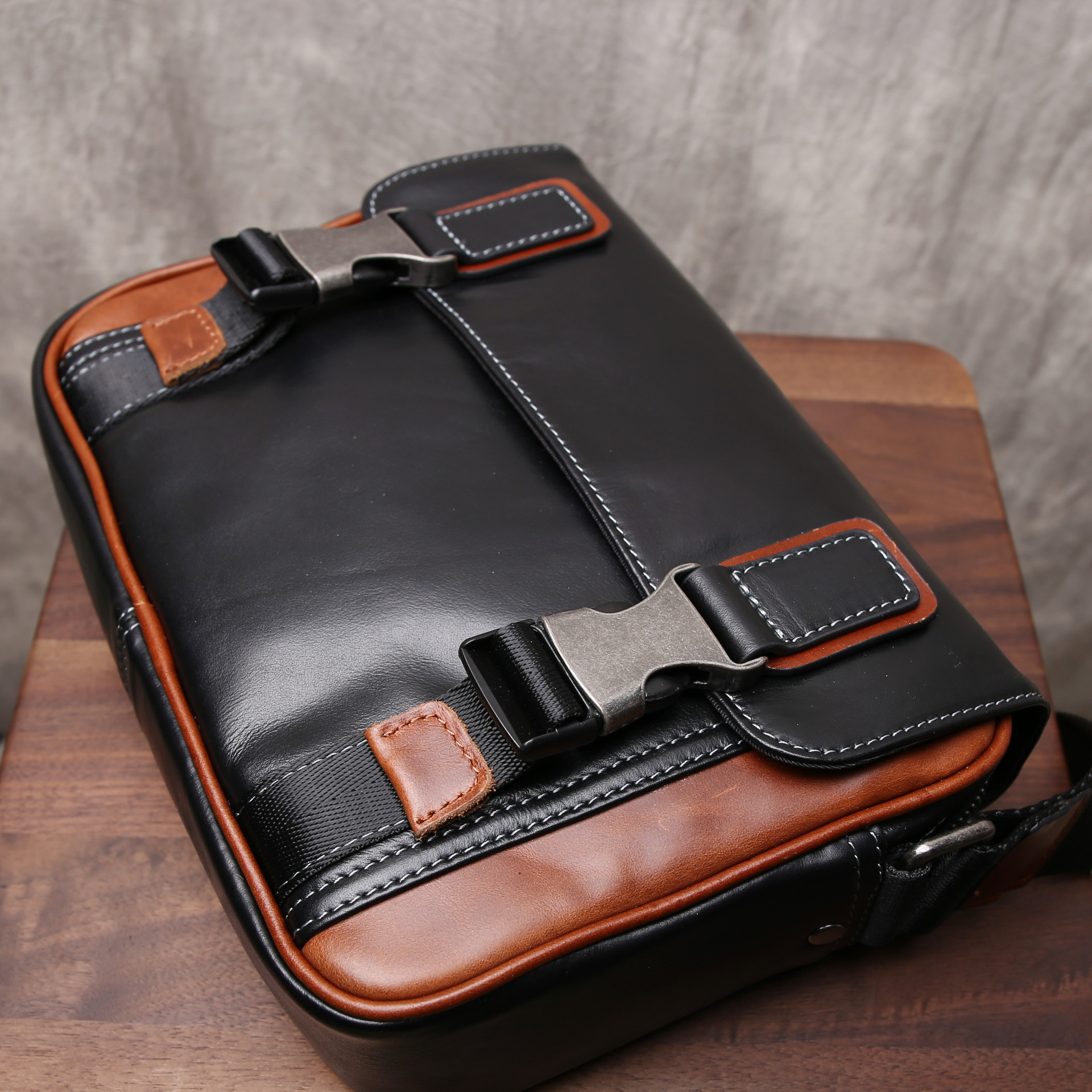本革メンズバッグ工場直販、最高級牛革カジュアルクロスボディバッグ、旅行用ショルダーバッグ、レザーミックスビジネスカジュアル
