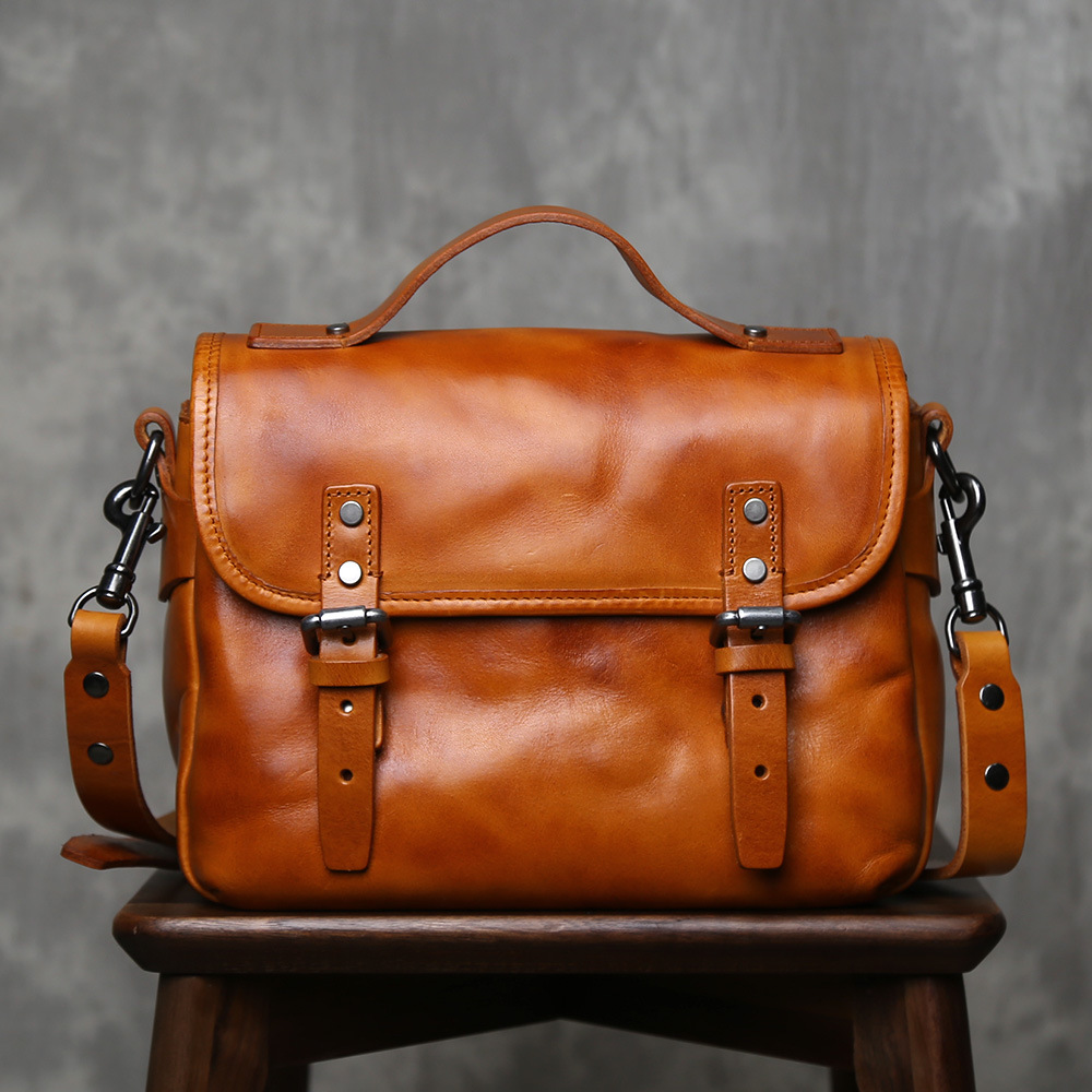 真皮女包手工头层牛皮植鞣简约邮差包单肩包斜挎包男女同款工厂