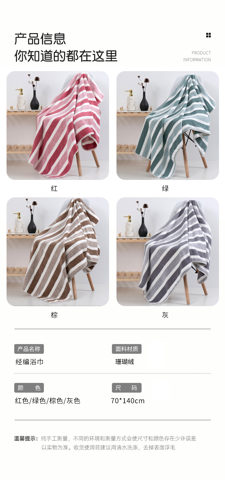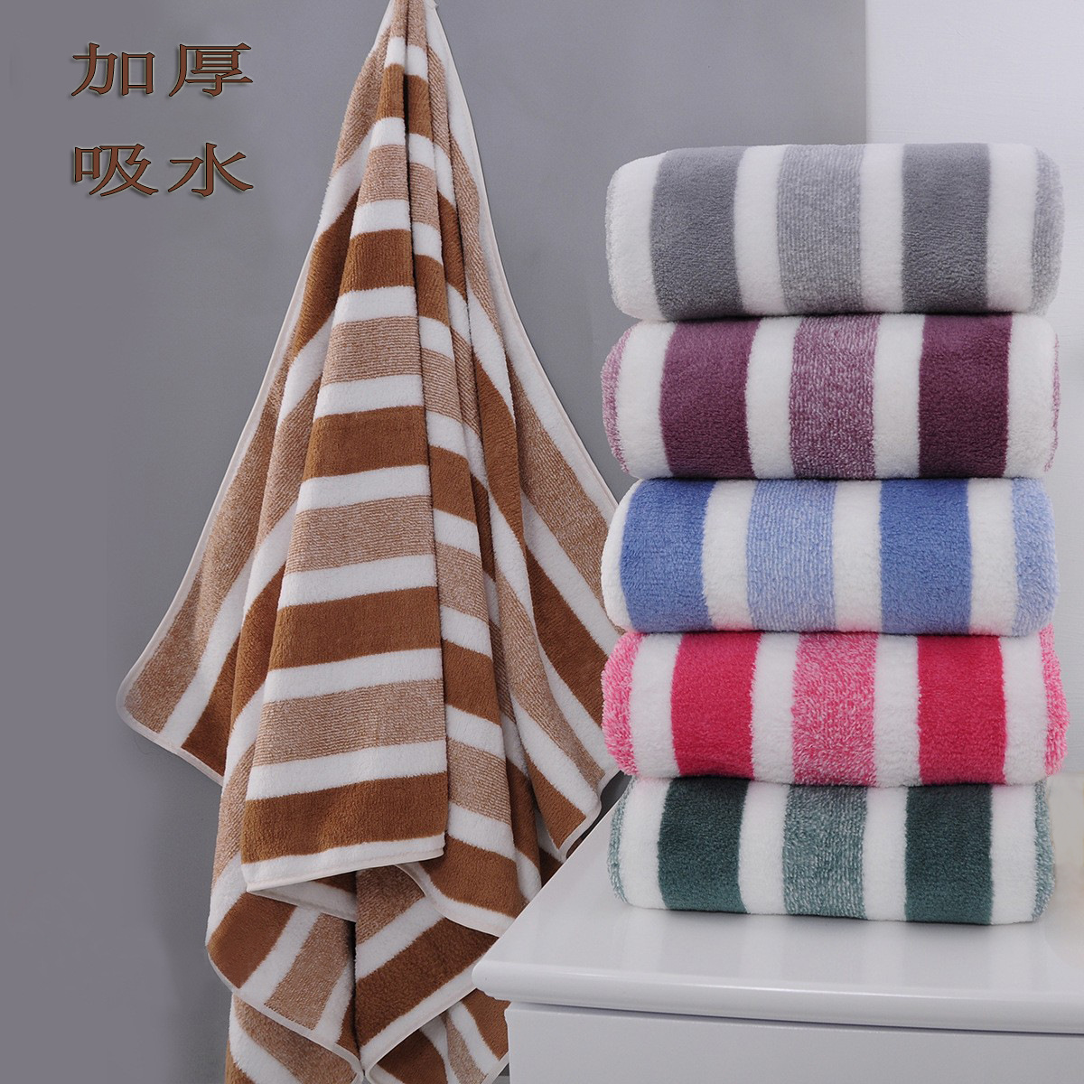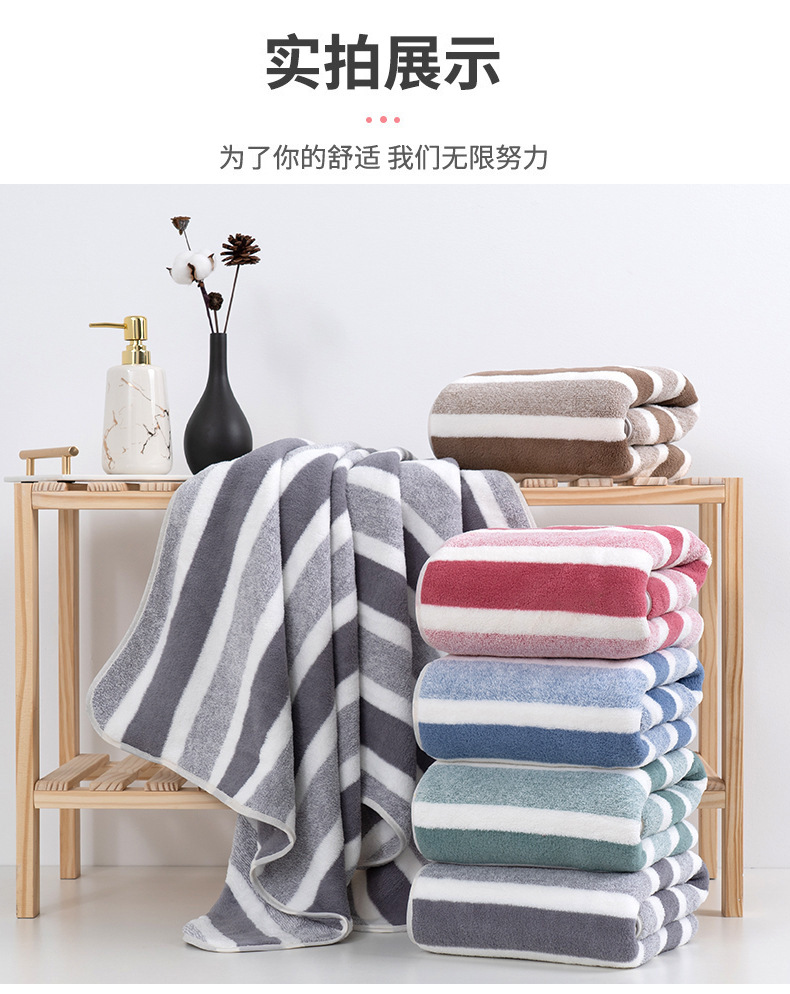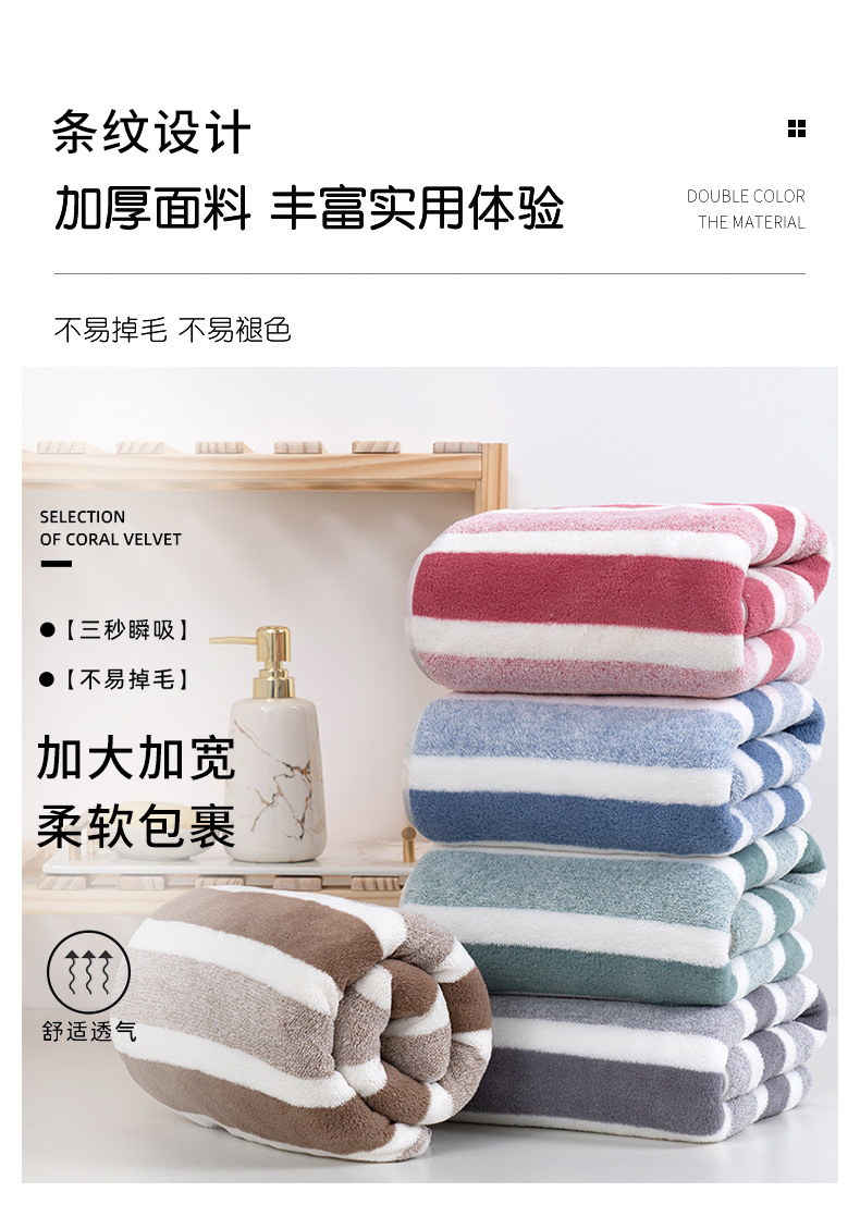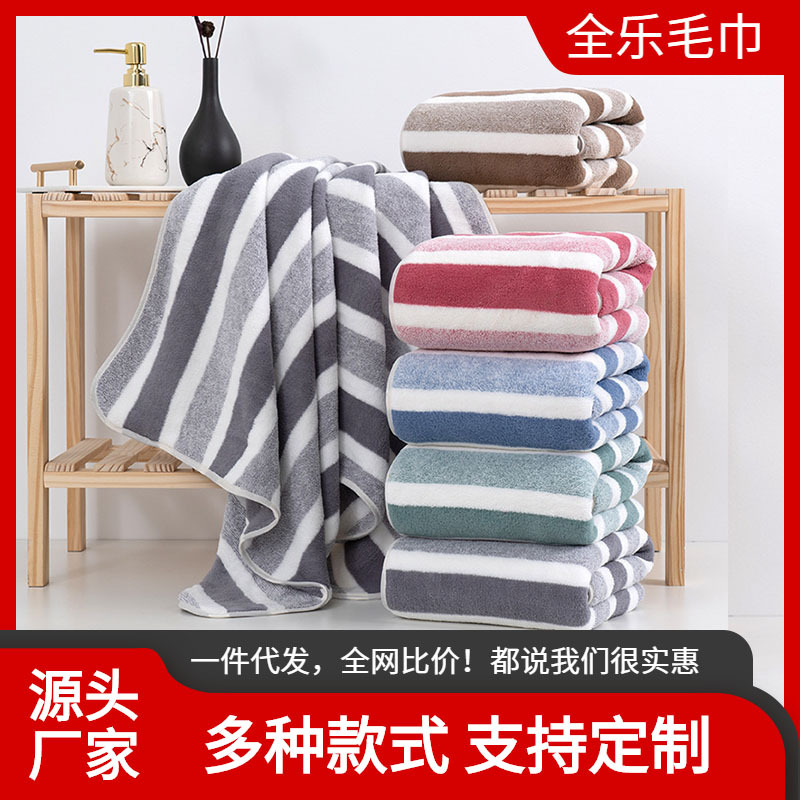 条纹毛巾浴巾套装珊瑚绒柔软吸水加厚洗澡巾家用毛巾厂家批发