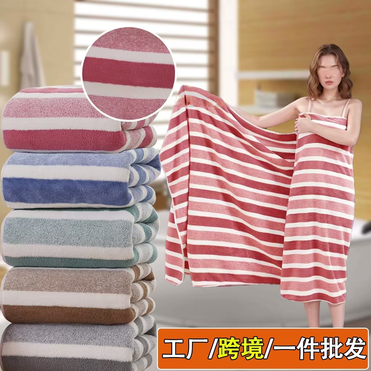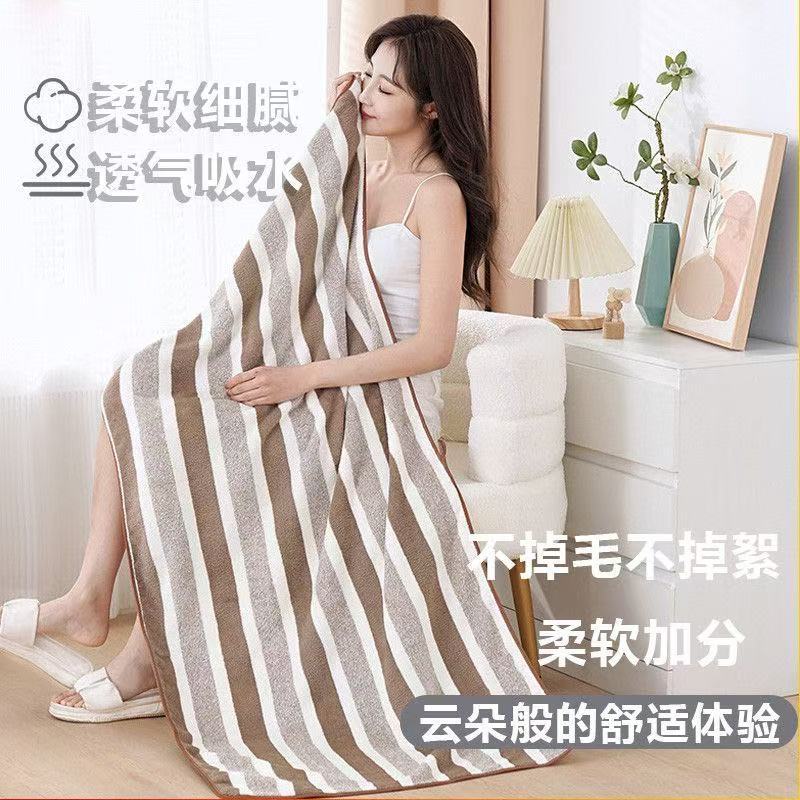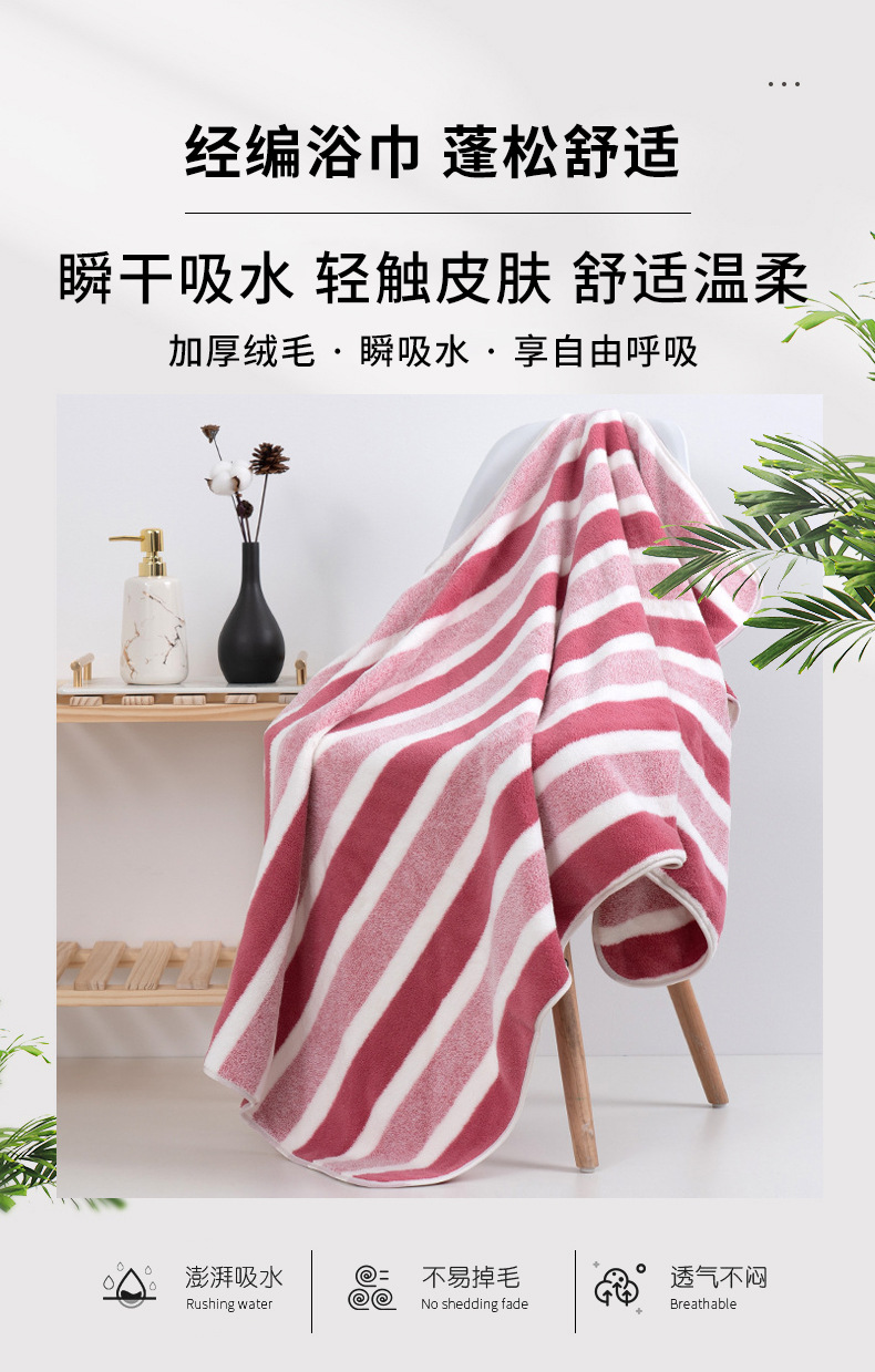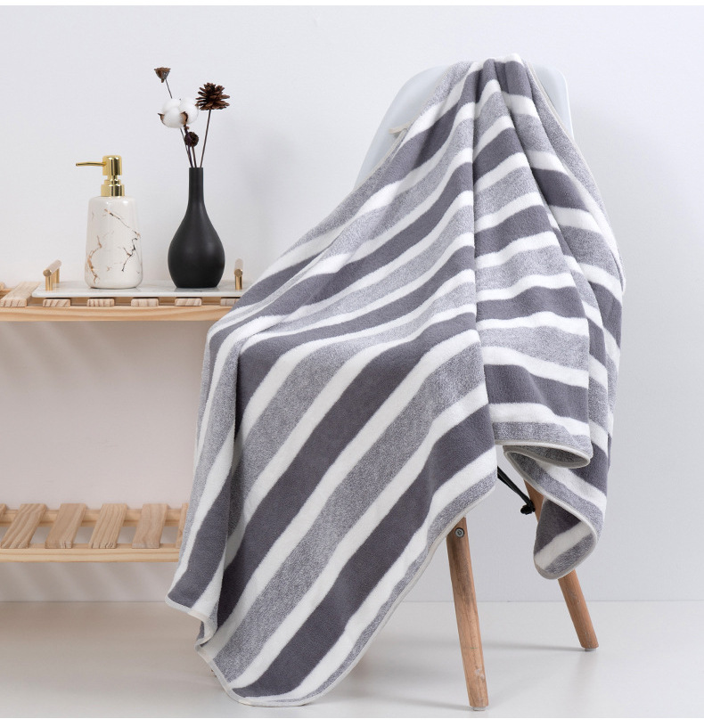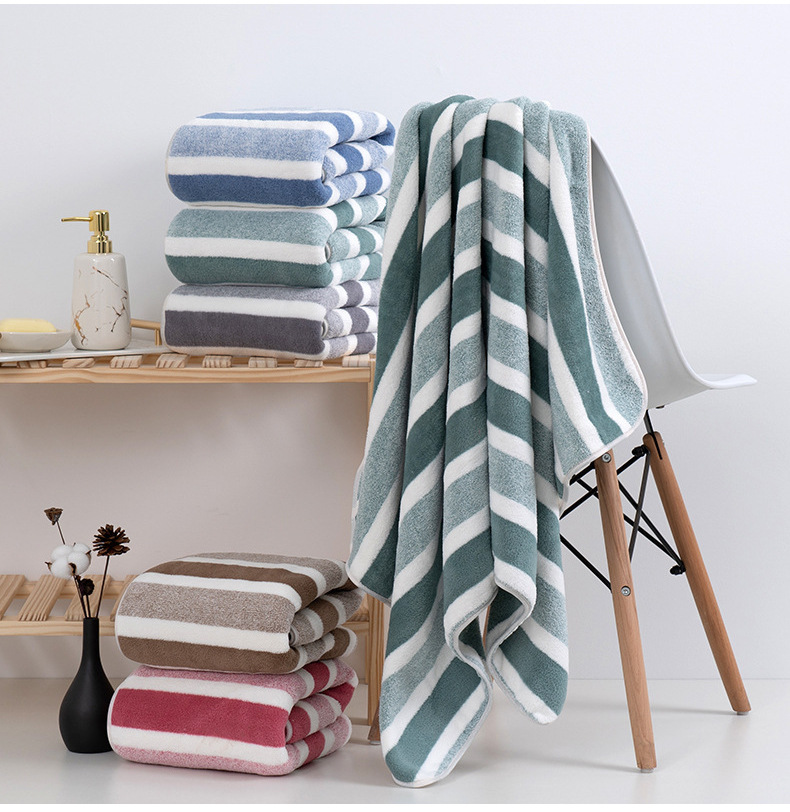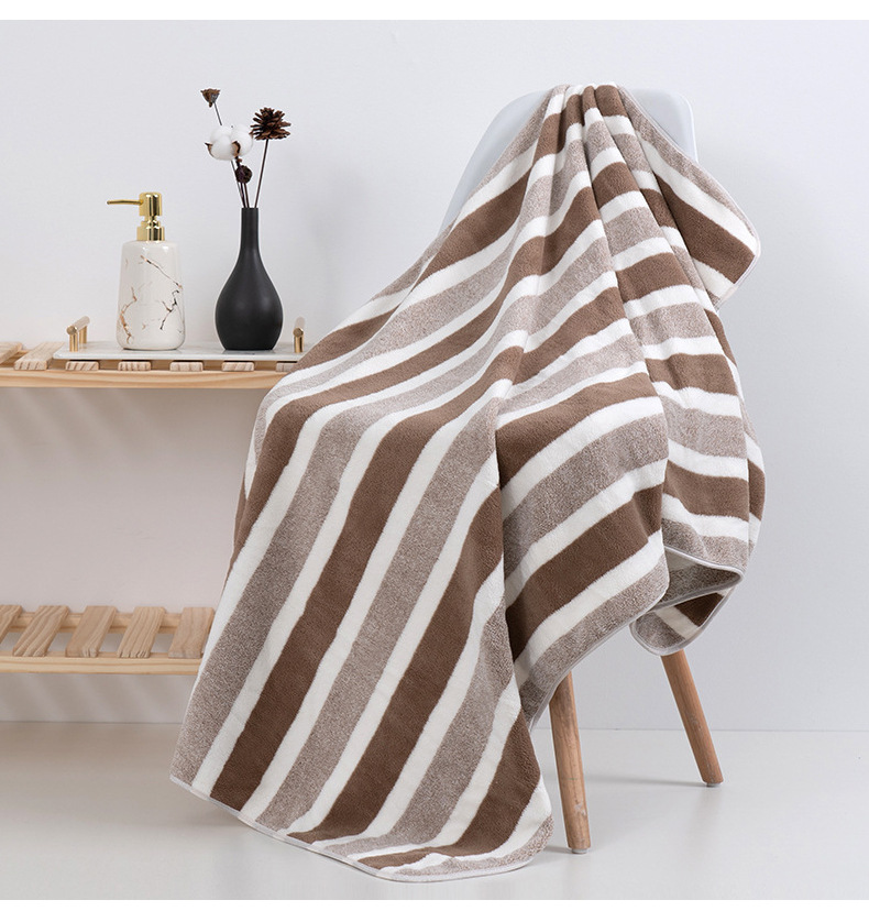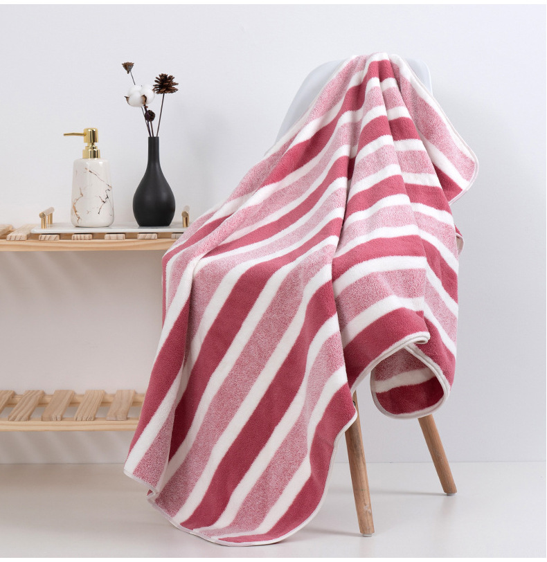 跨境电商供货珊瑚绒浴巾加厚超柔软吸水成人家用不掉毛条纹沙滩巾
