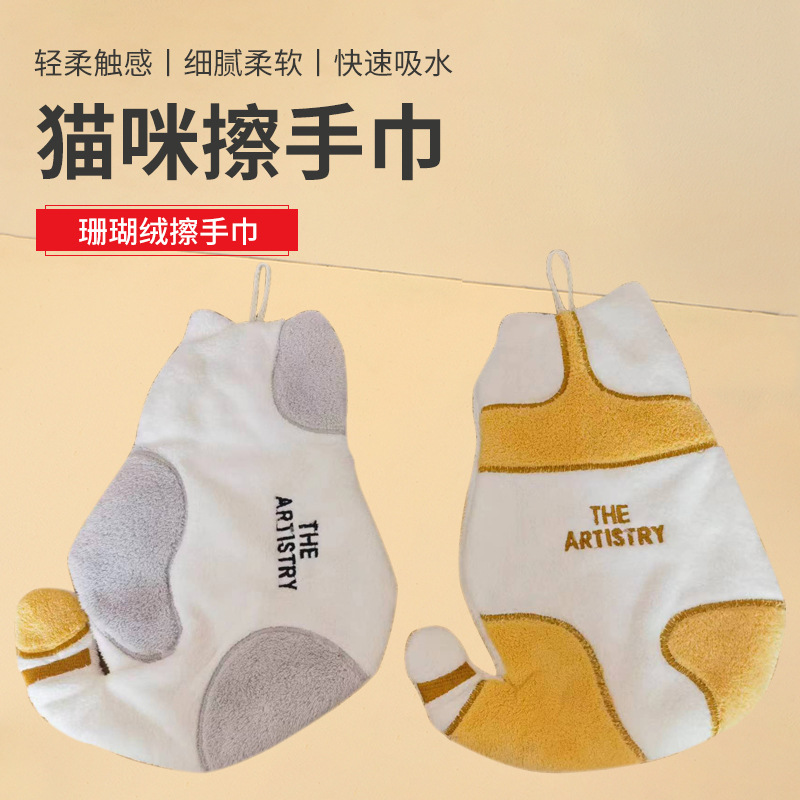 猫の手拭きタオルは家庭用台所の子供漫画サンゴのベルベットがかわいい吸水拭きタオル卸売りができる