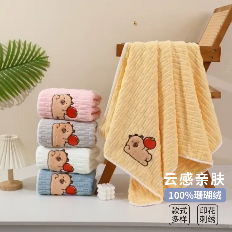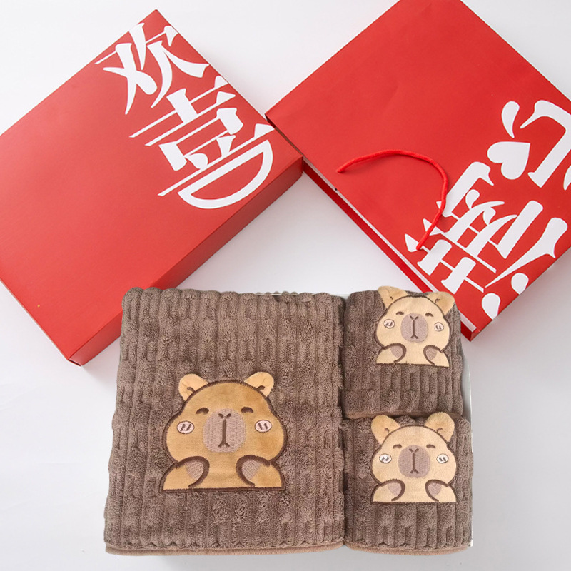 タオルバスタオルセット2点セット可爱いカピバラフェイスタオル家庭用漫画お风吕珊瑚タオル