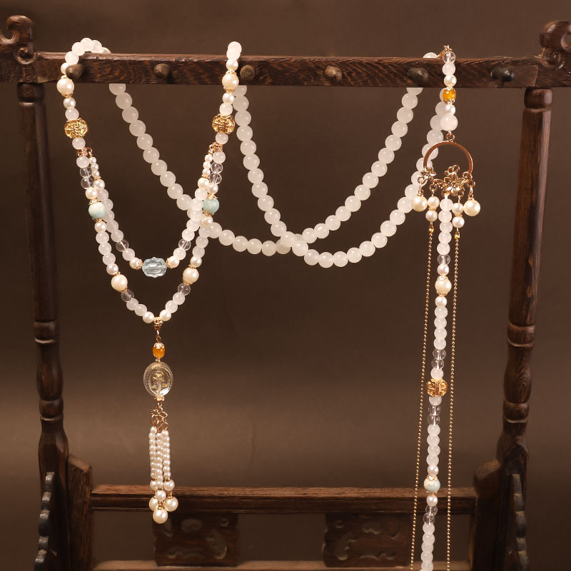 古風明製の襟のビーズのネックレスの新しい中国式の長いフリンジの背雲の柔らかいロックの国風の漢服の馬のスカートの装飾
