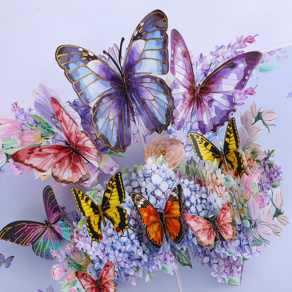 小清新蝶シリーズ誕生日三次元グリーティングカード手作り折り畳み可能な透かし彫りデザインプレゼントグリーティングカード