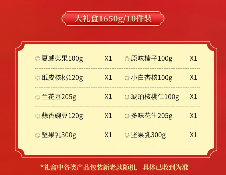 【三只松鼠_坚果大礼包福满礼1300g/10袋】年货节礼盒零食品每日