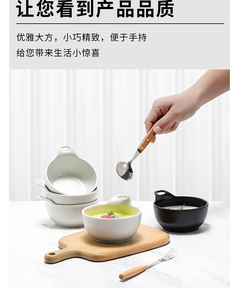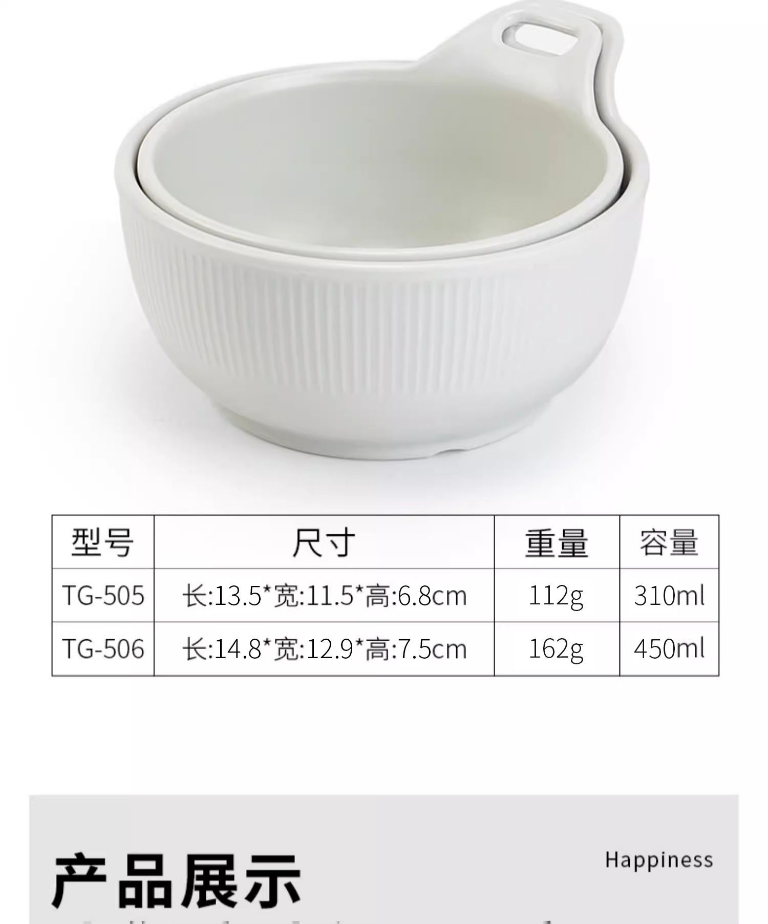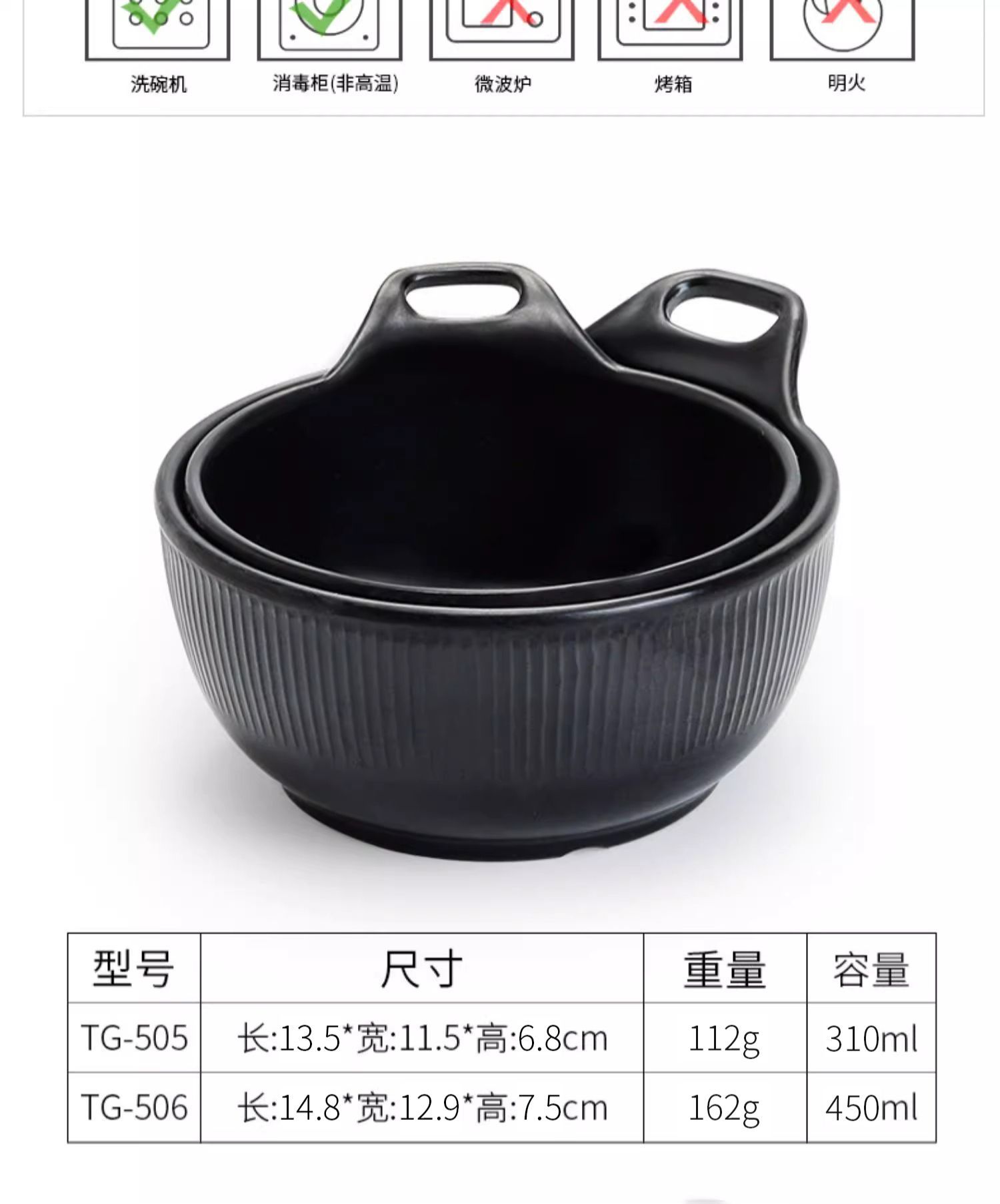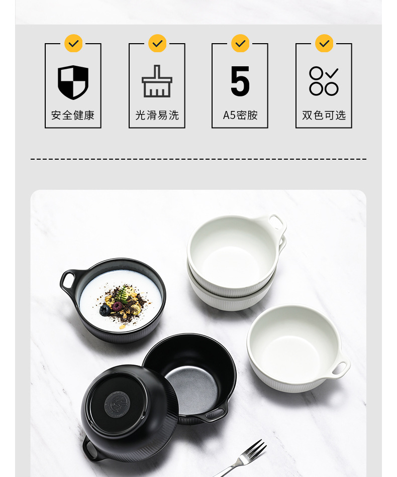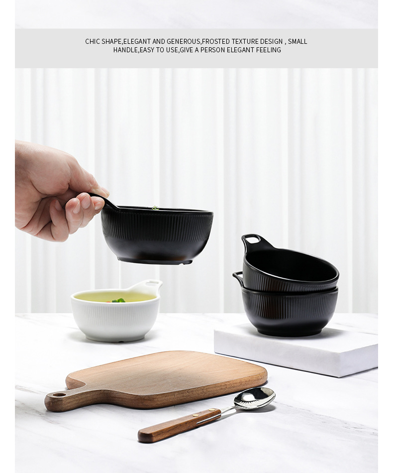 メラミンの小さい碗は磁器のアイデアをまねて、取っ手の取っ手の朝食の碗の麦の碗のサラダの碗のプラスチックのオート麦の碗を持ちます。