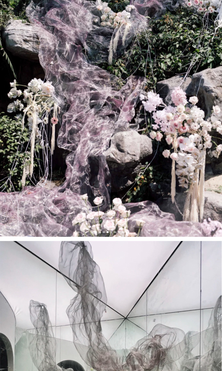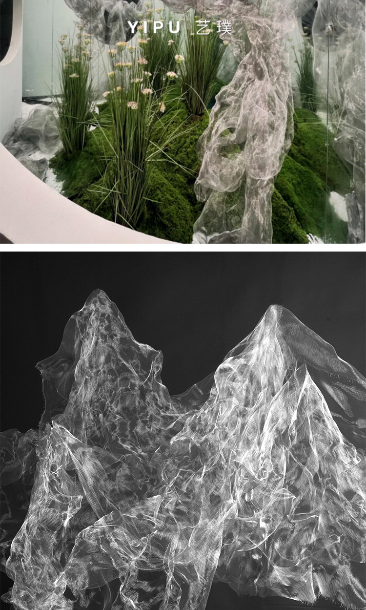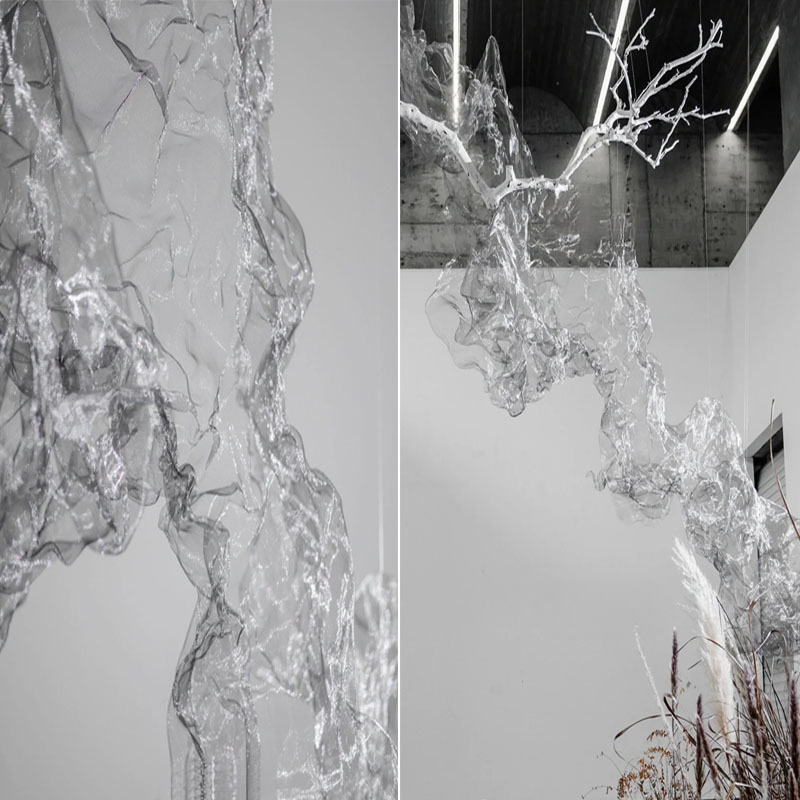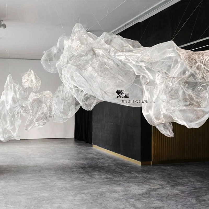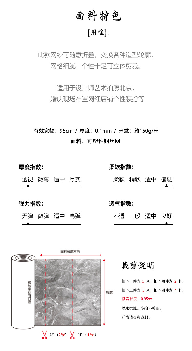 白灰可塑钢丝网金属云雾网造型硬网纱布料艺术材料设计师面料
