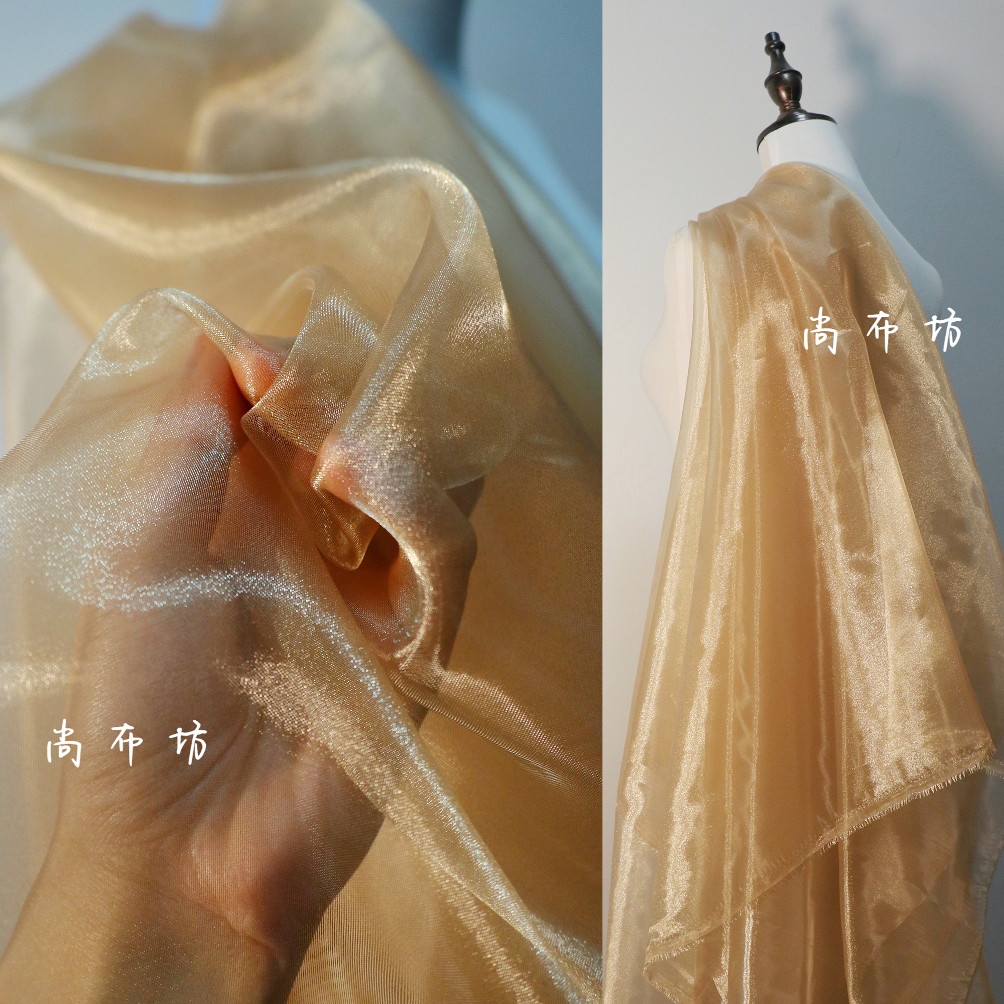 金咖色水晶纱辅料水光网纱高密硬欧根纱手工diy布置设计师布面料