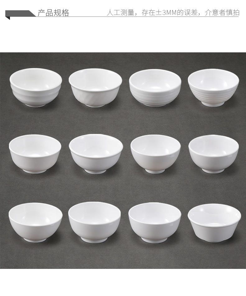 メラミンの小さい碗の10個は磁器のバイキングの商用の白いプラスチックのスープの碗のご飯の碗のおかゆの碗の鍋の調味料の碗を模造します