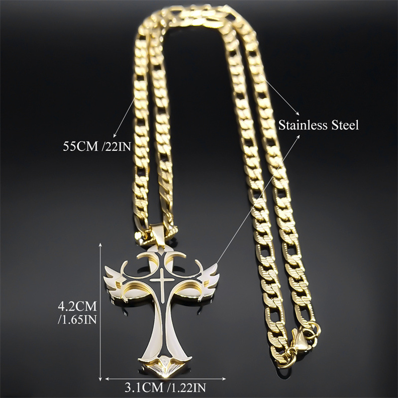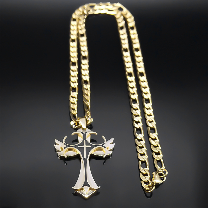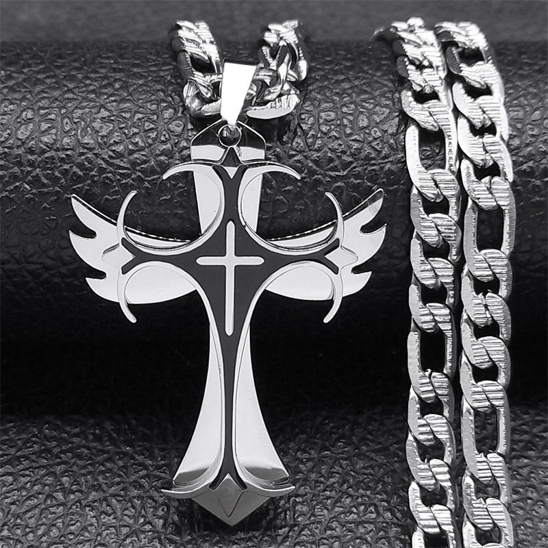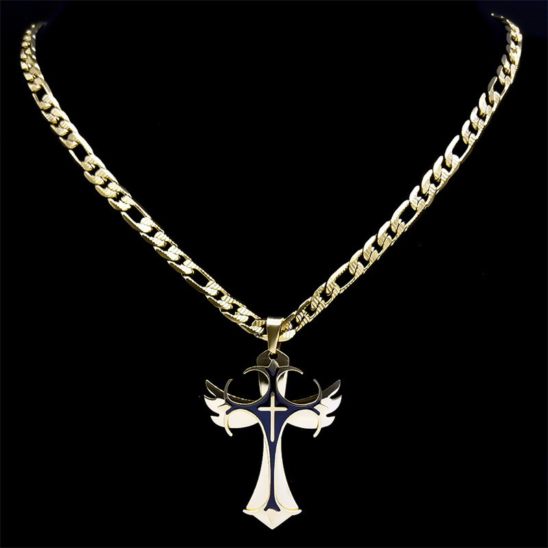 国境を越えた欧米の新型欧米滴油クロスペンダントネックレスステンレスチタン鋼男性アクセサリーネックレス