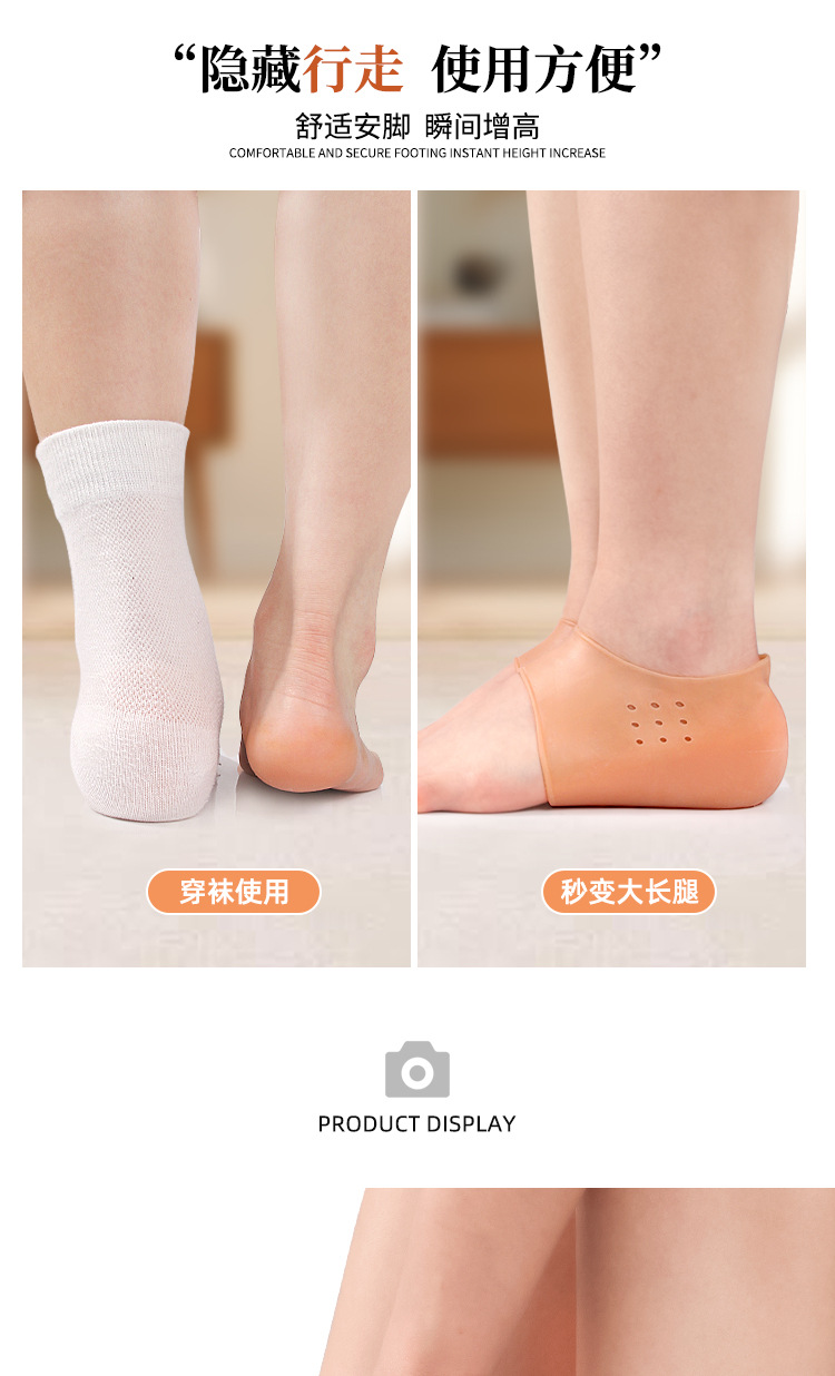 一体内增高隐形鞋垫硅胶后跟半垫增高鞋垫袜子女士透气减震后跟垫