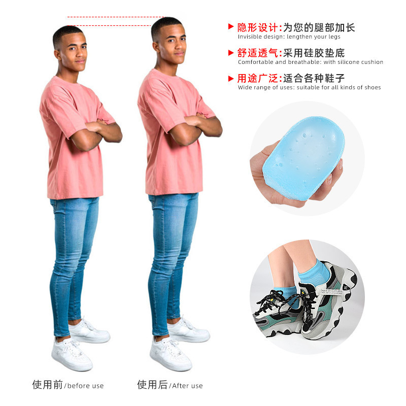 软袜内仿生舒适鞋垫硅胶隐形增高鞋垫休闲运动减震内增高后跟垫