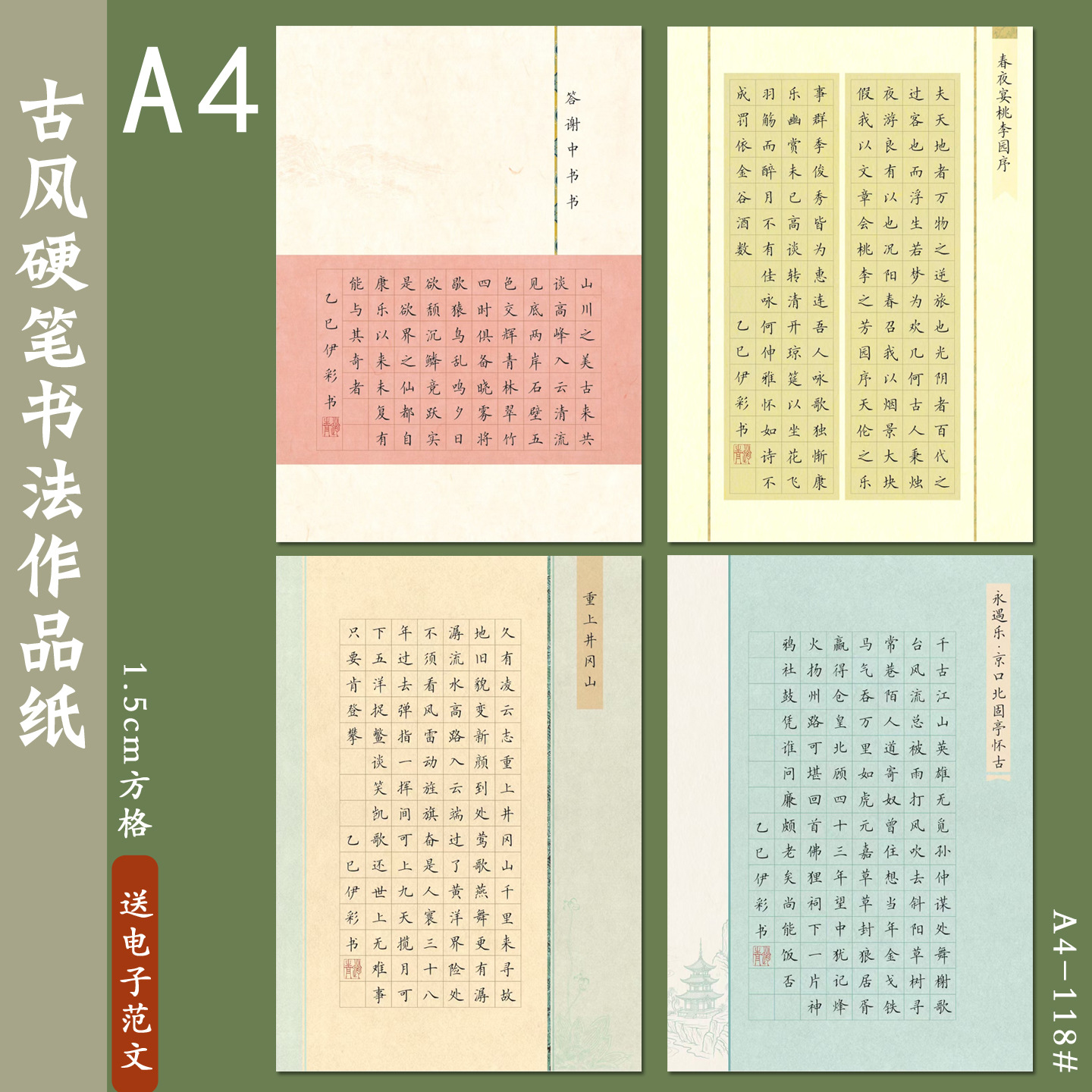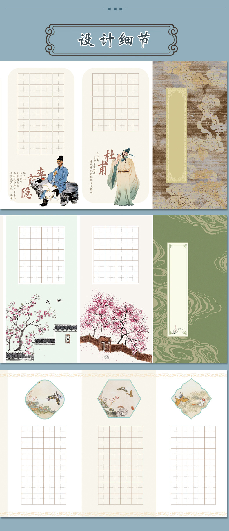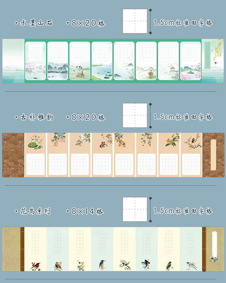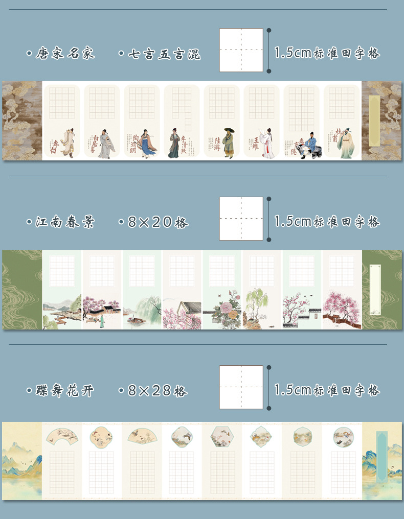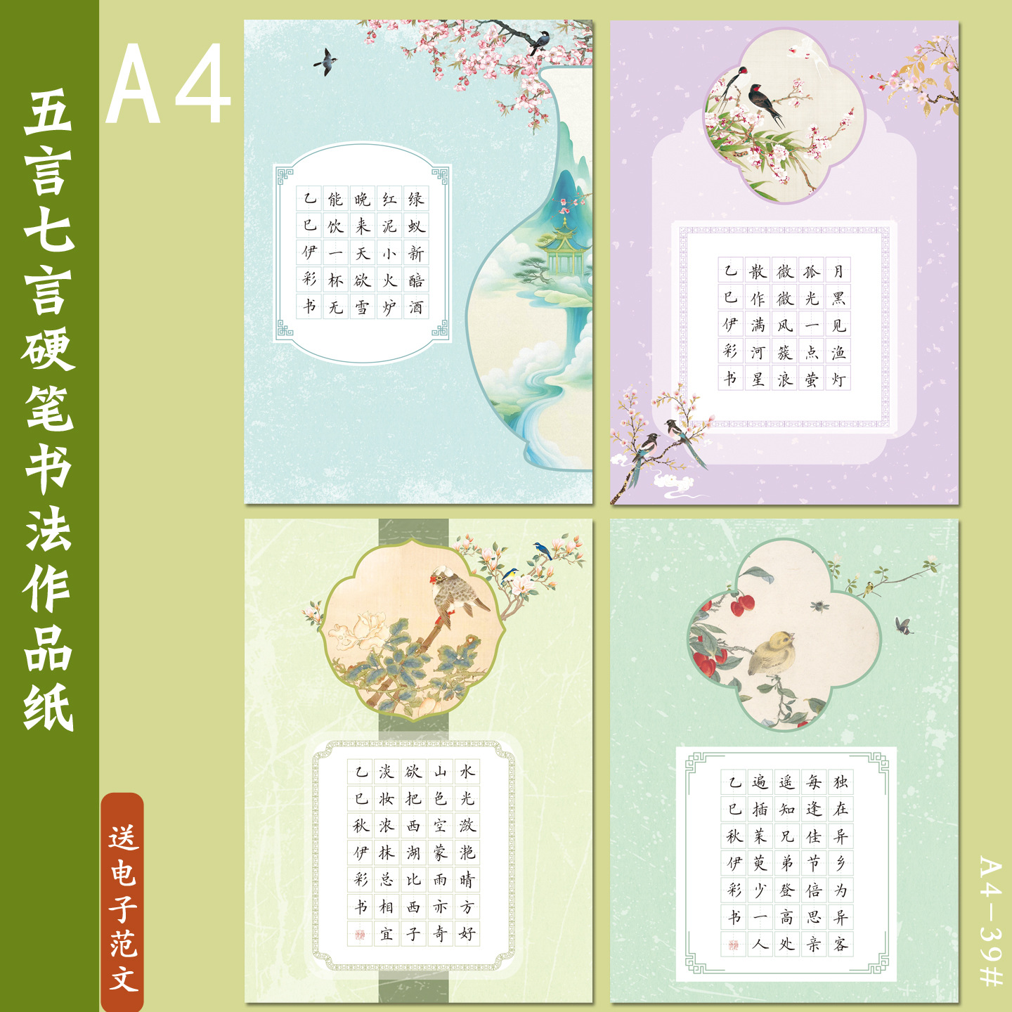 A4硬筆書道作品紙五言絶句20格国風唐詩学生筆記練習紙1.5田字格