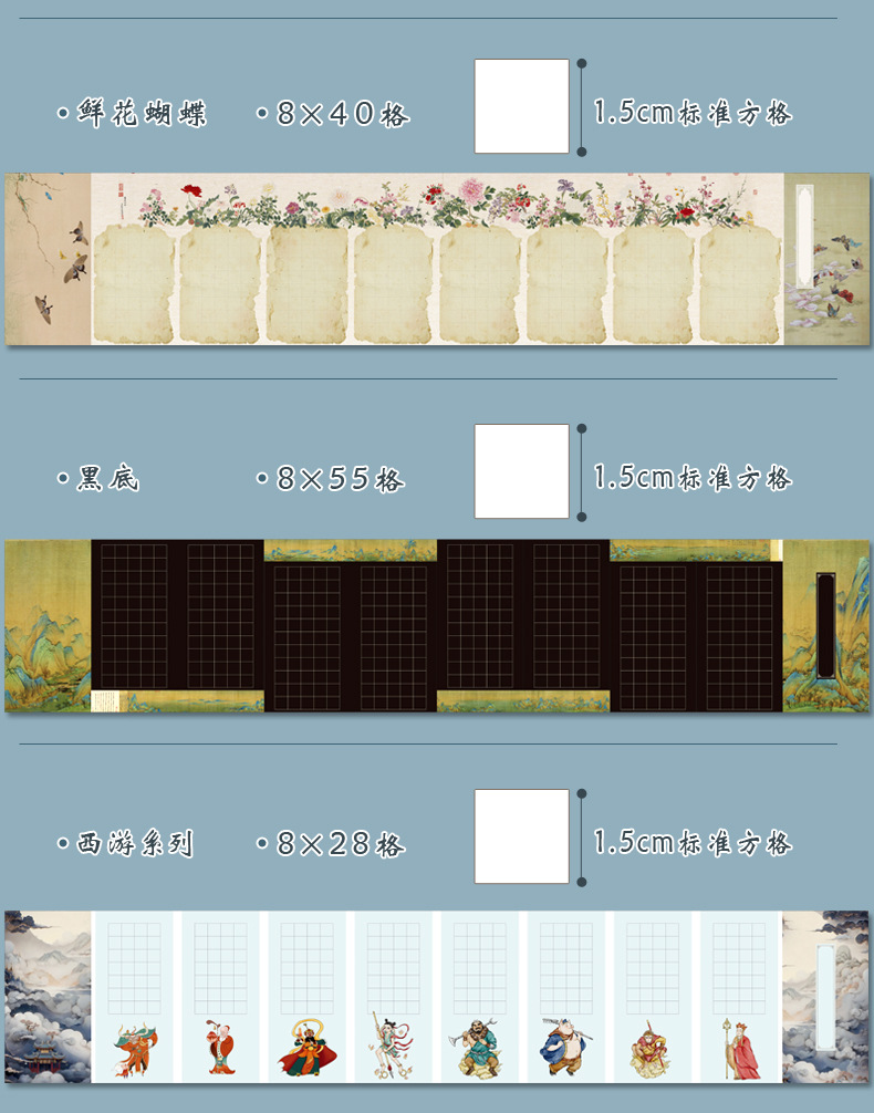 A 4硬筆書道作品紙1.5方眼112格古風国展参加筆記練習字創作試合1.5