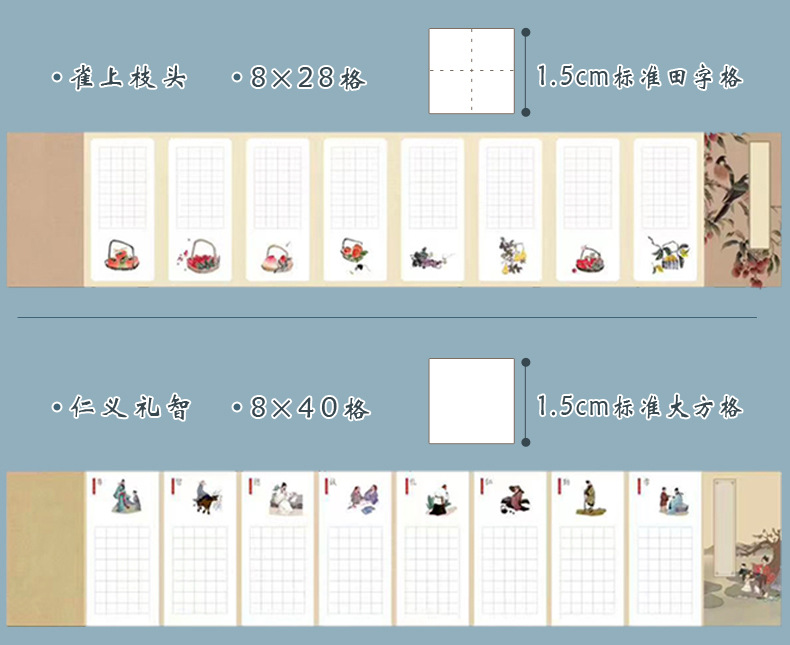 A 4硬筆書道作品紙七言絶句28格国風唐詩学生筆記練習紙1.5田字格