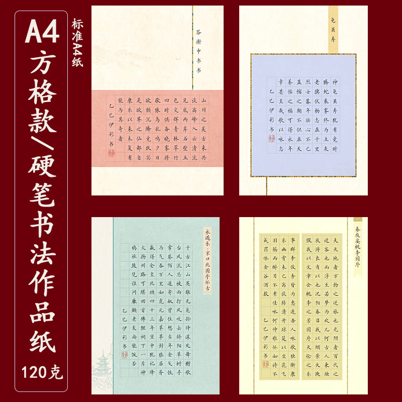 标准A4硬笔书法作品纸加厚120克方格款作品纸学生书写比赛展示纸