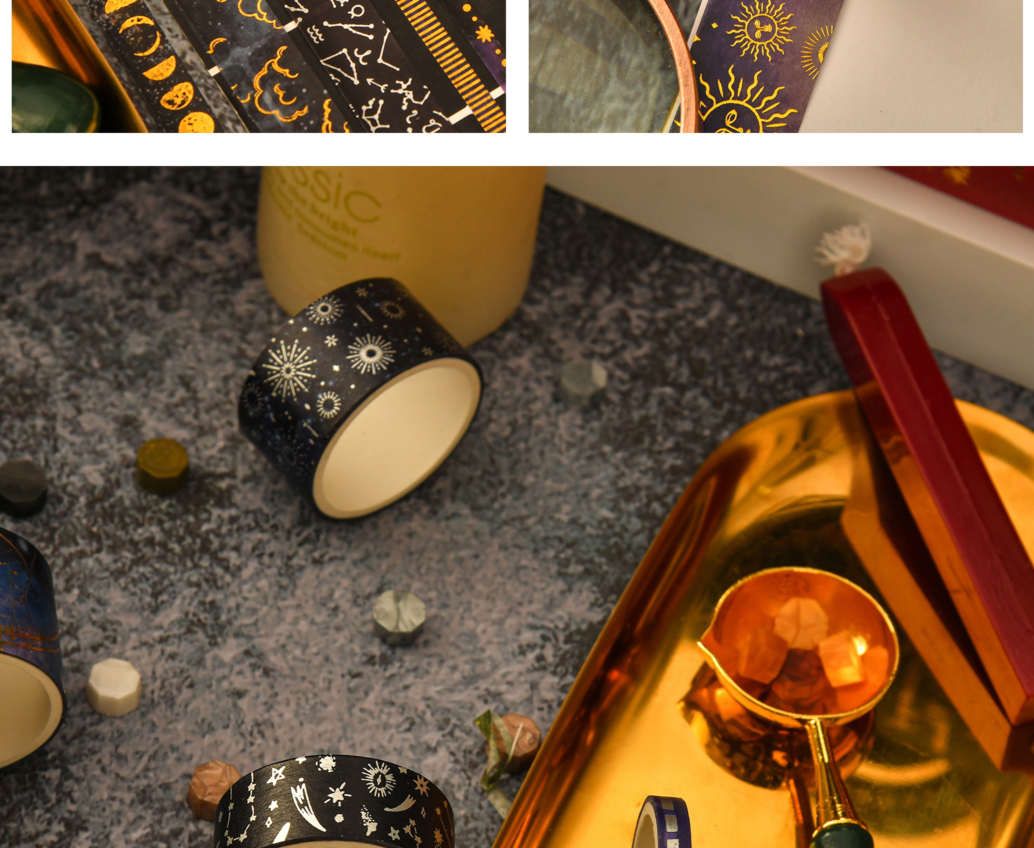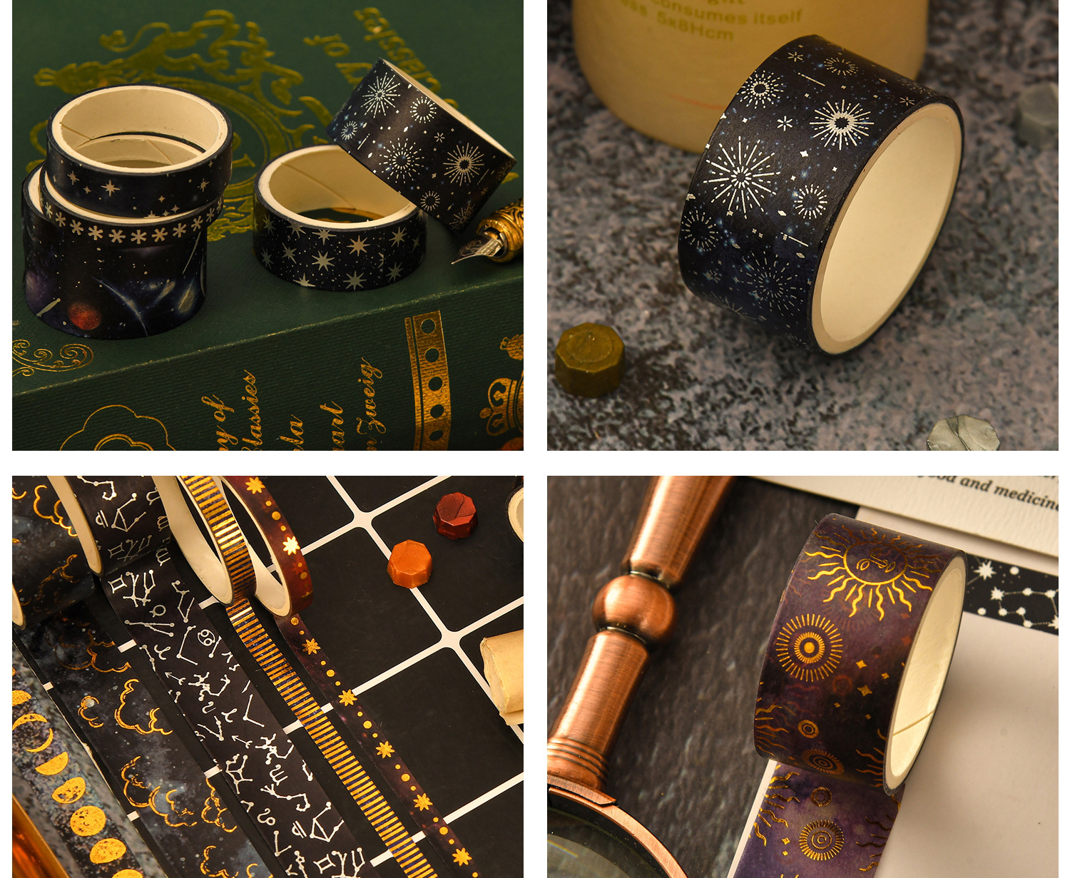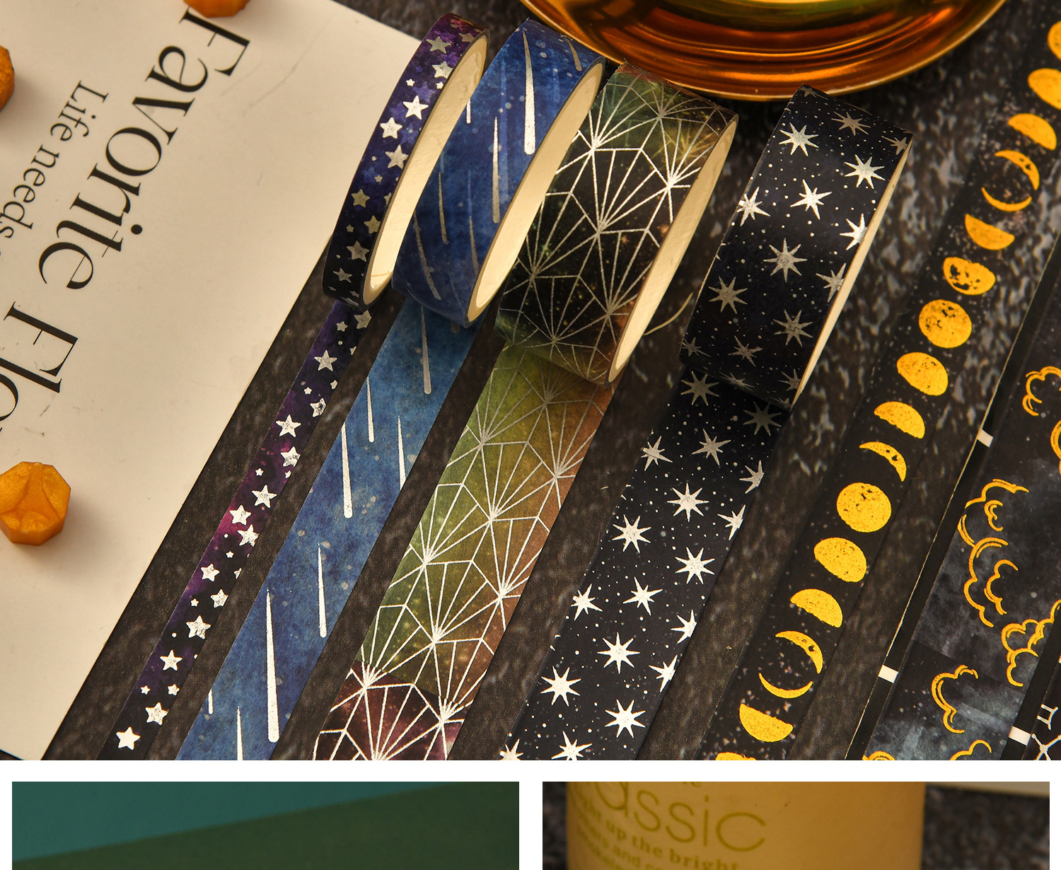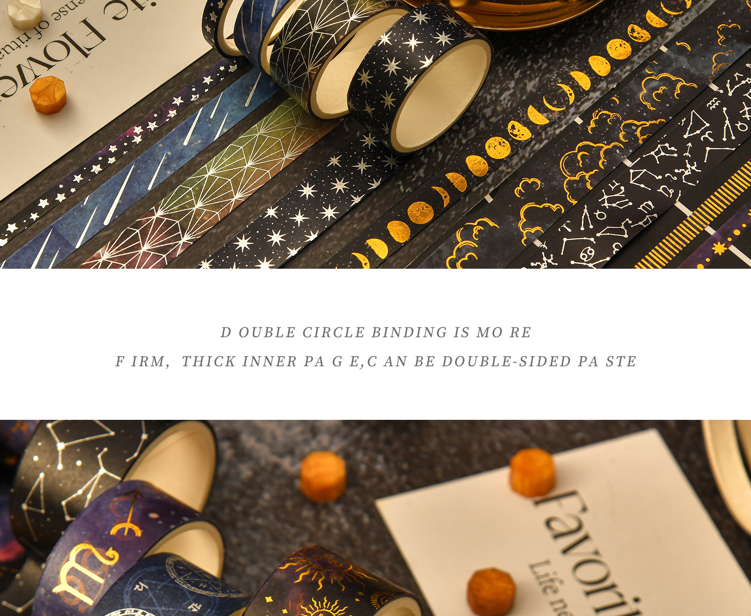 広大な星空と紙テープ夢幻星宇宙DIY装飾貼りかわいい箔押しと紙テープ