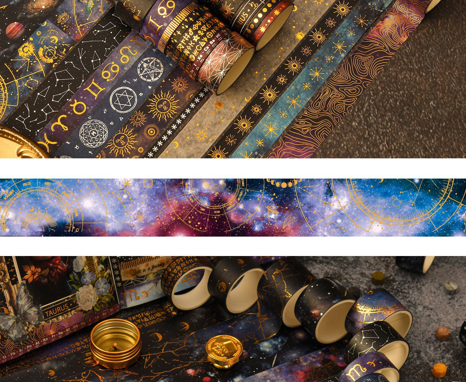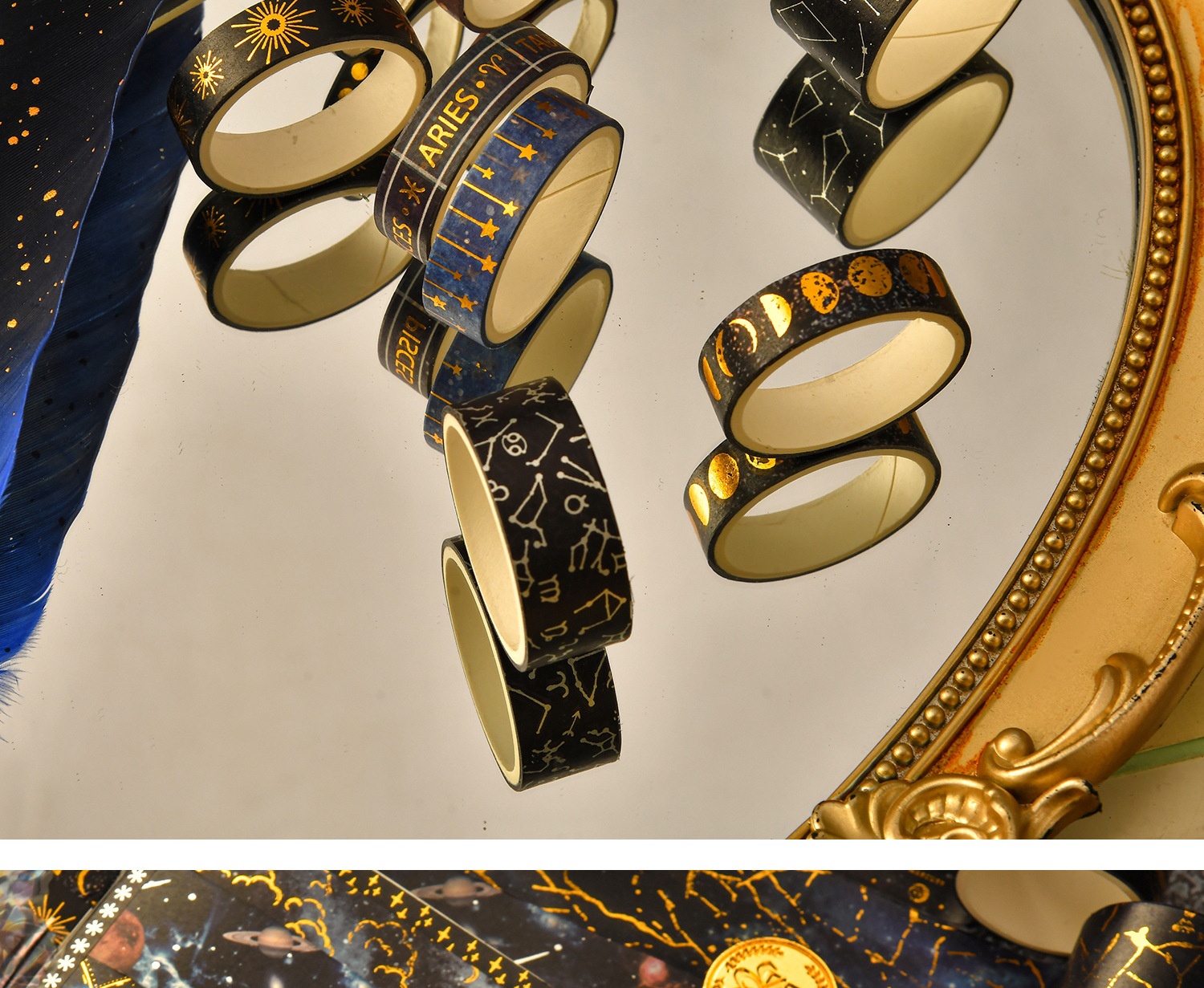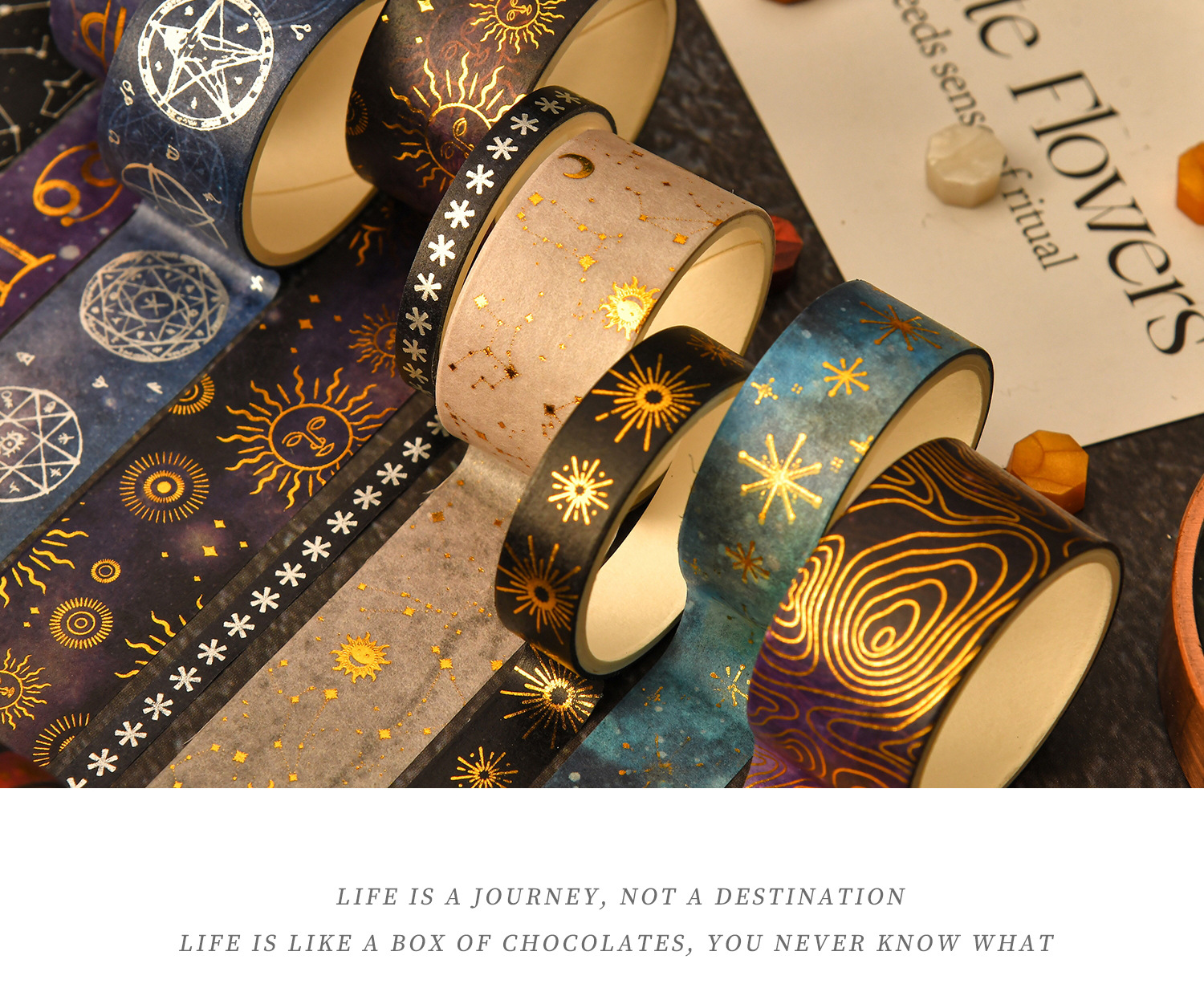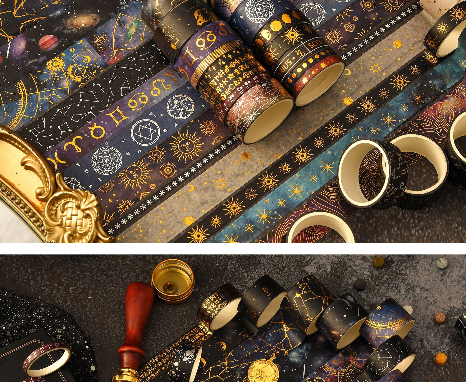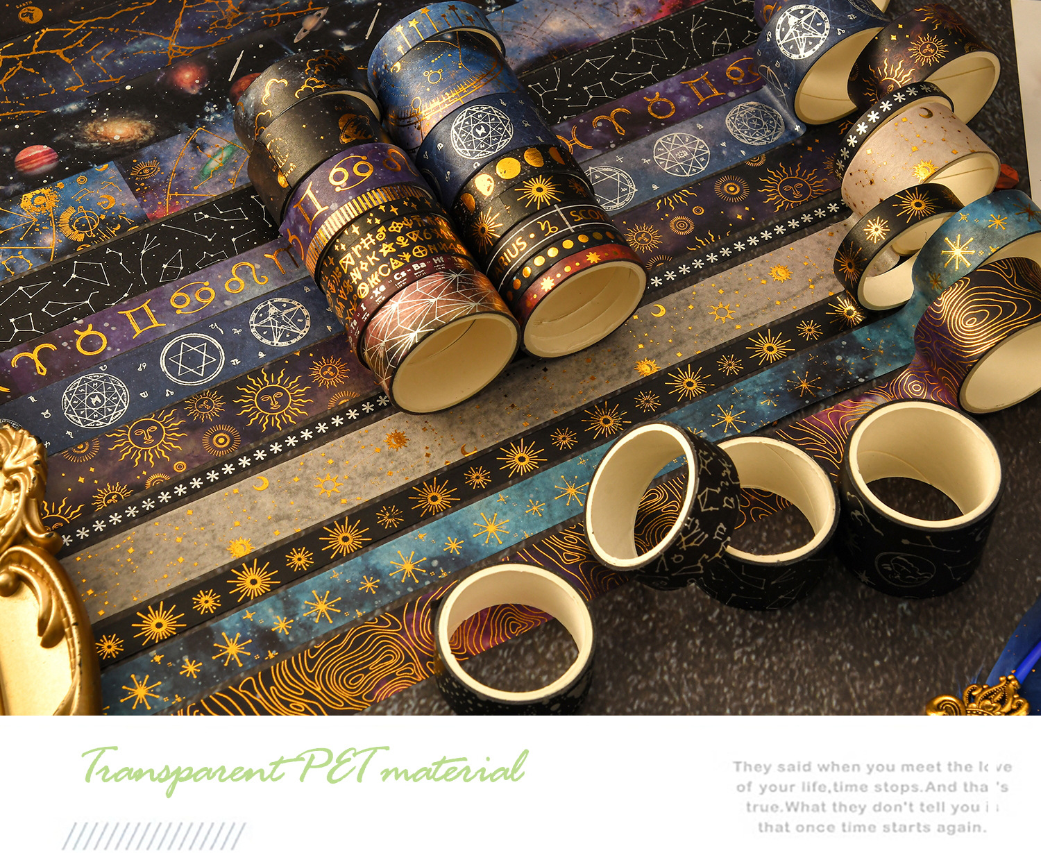 広大な星空と紙テープ夢幻星宇宙DIY装飾貼りかわいい箔押しと紙テープ