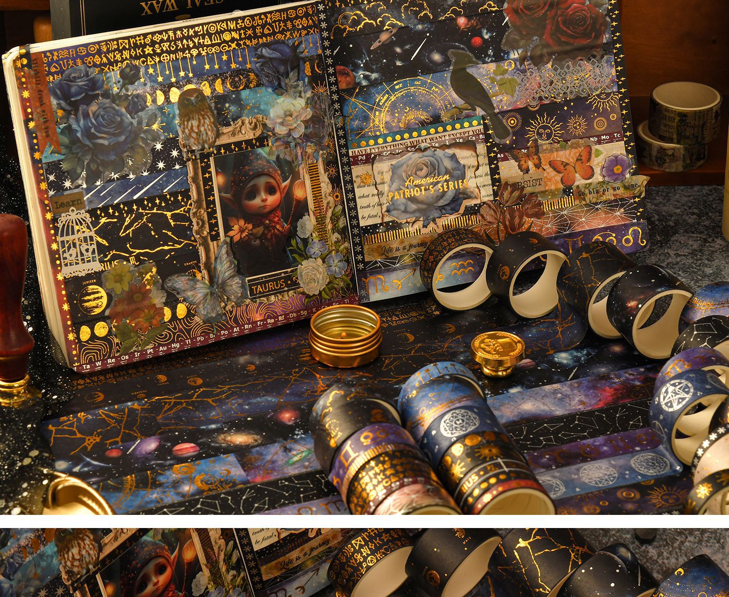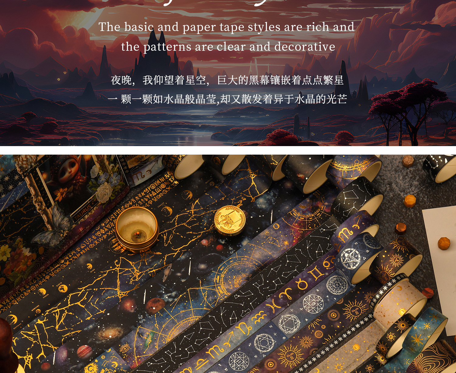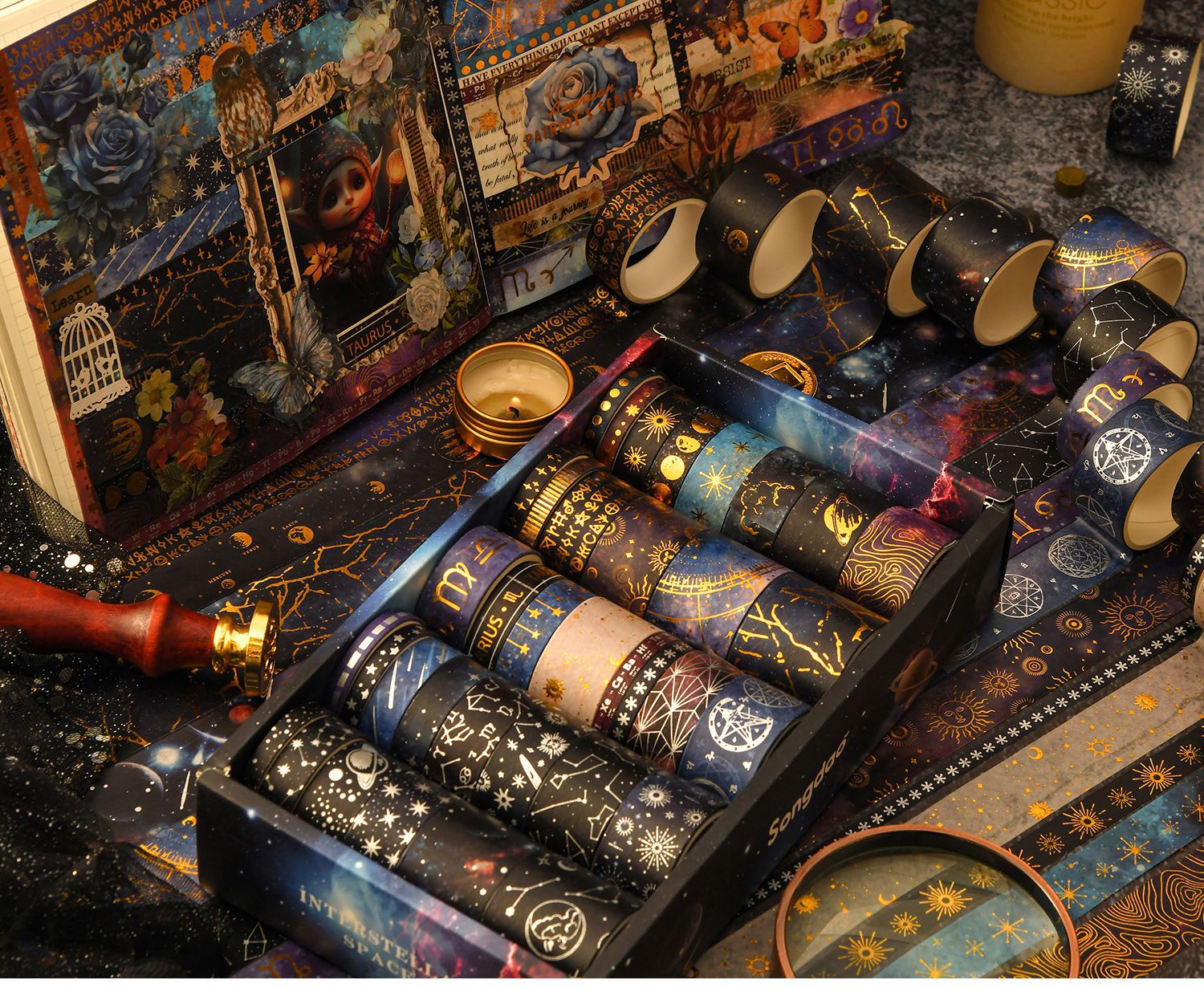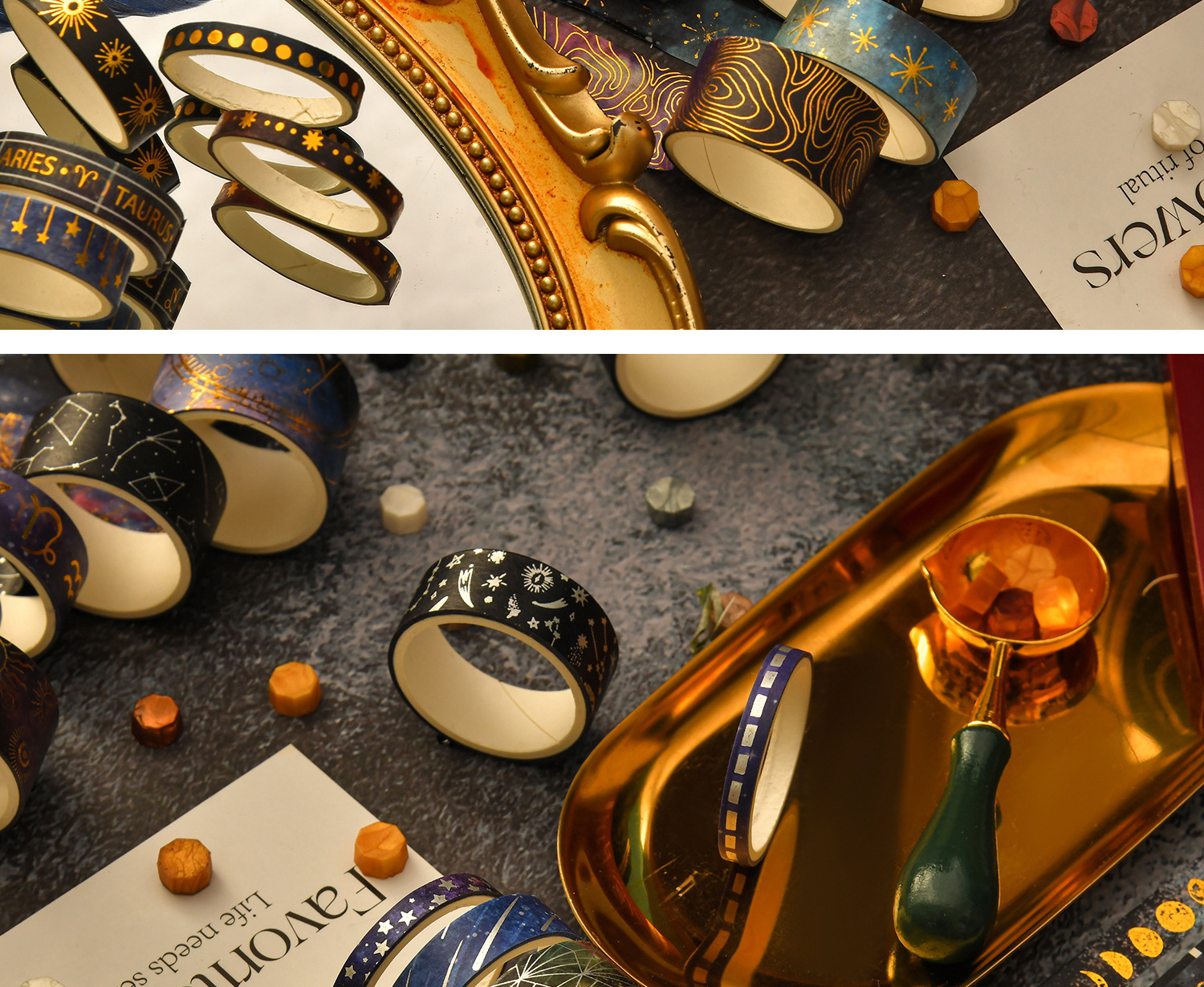 広大な星空と紙テープ夢幻星宇宙DIY装飾貼りかわいい箔押しと紙テープ