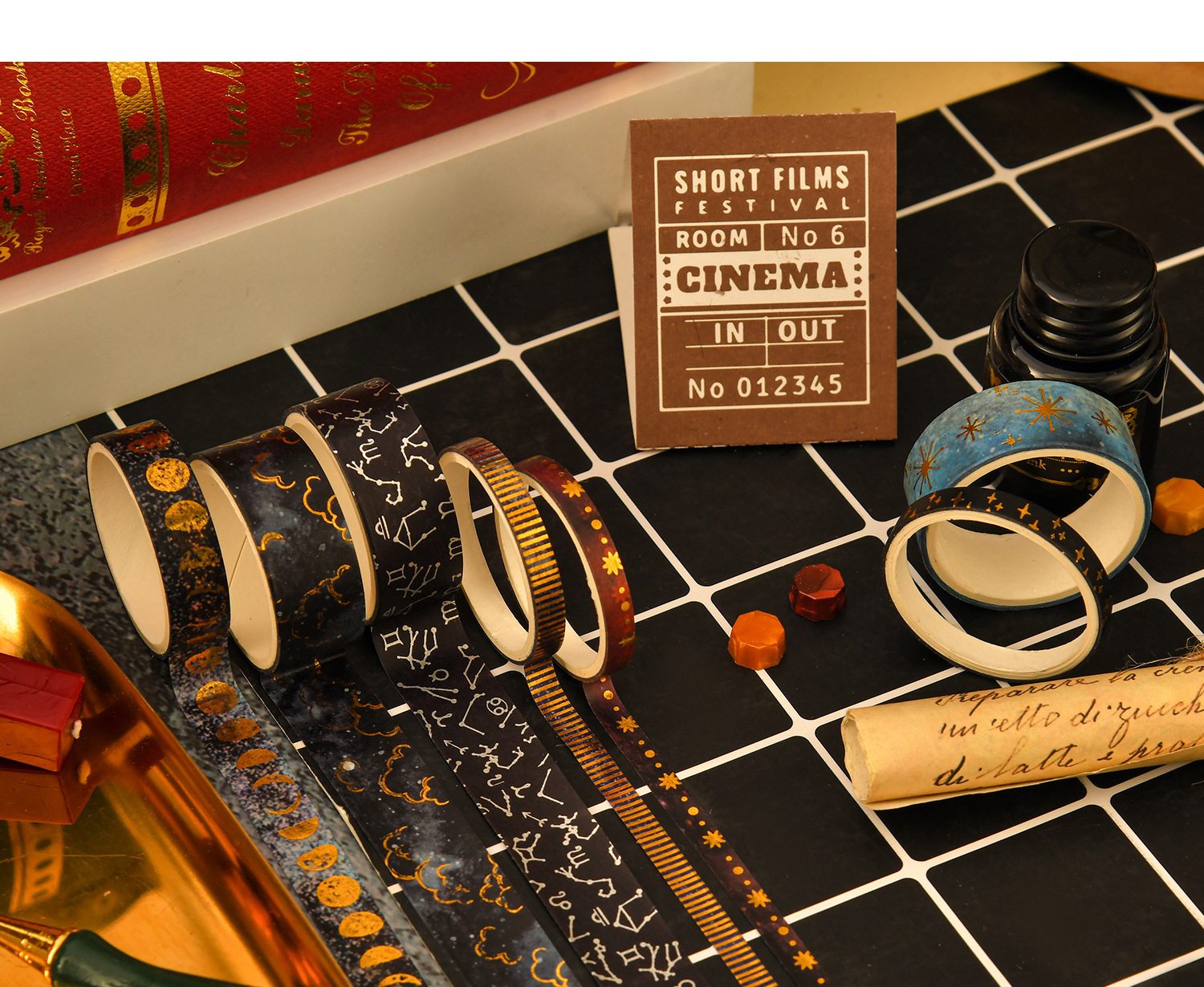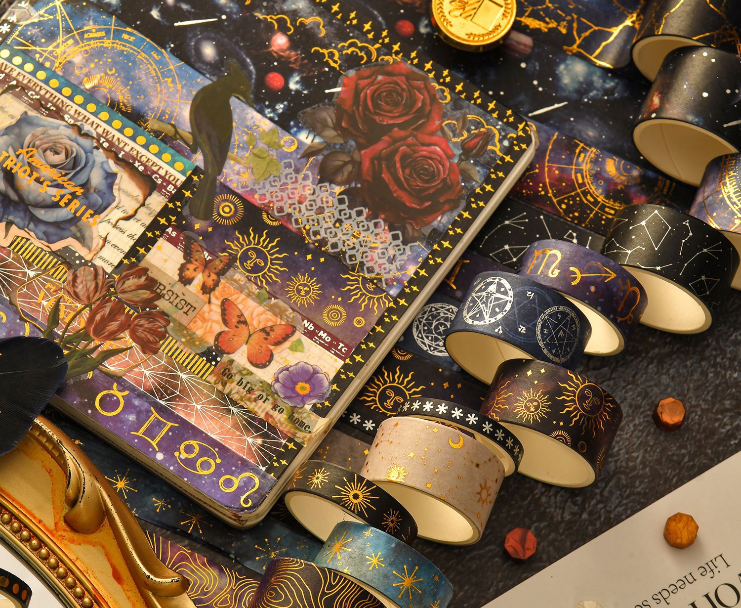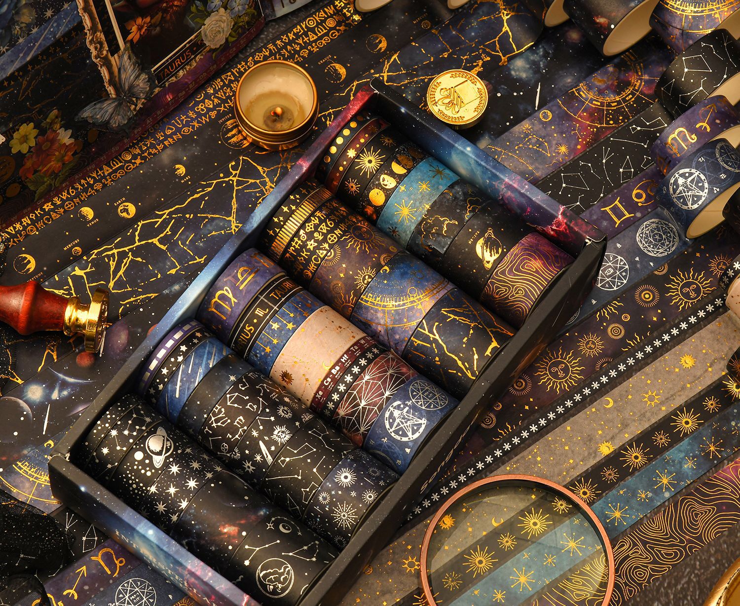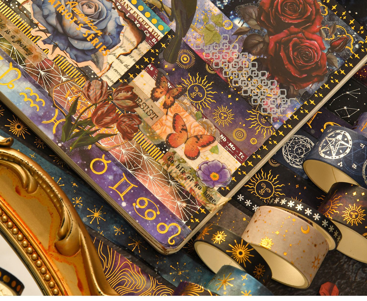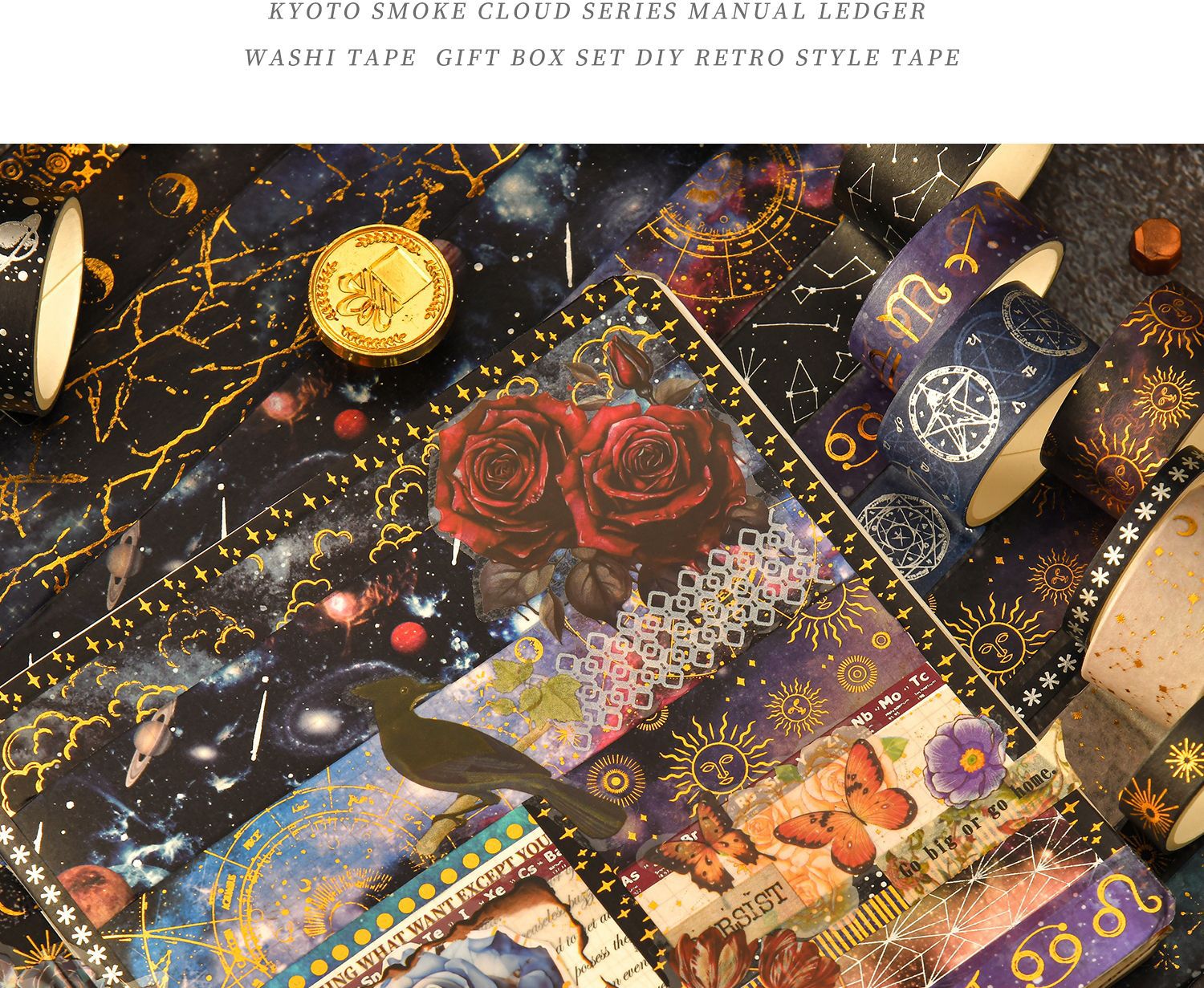 広大な星空と紙テープ夢幻星宇宙DIY装飾貼りかわいい箔押しと紙テープ