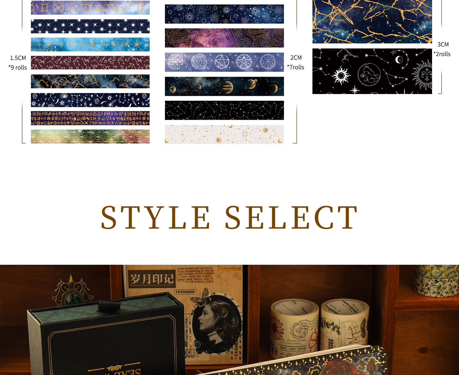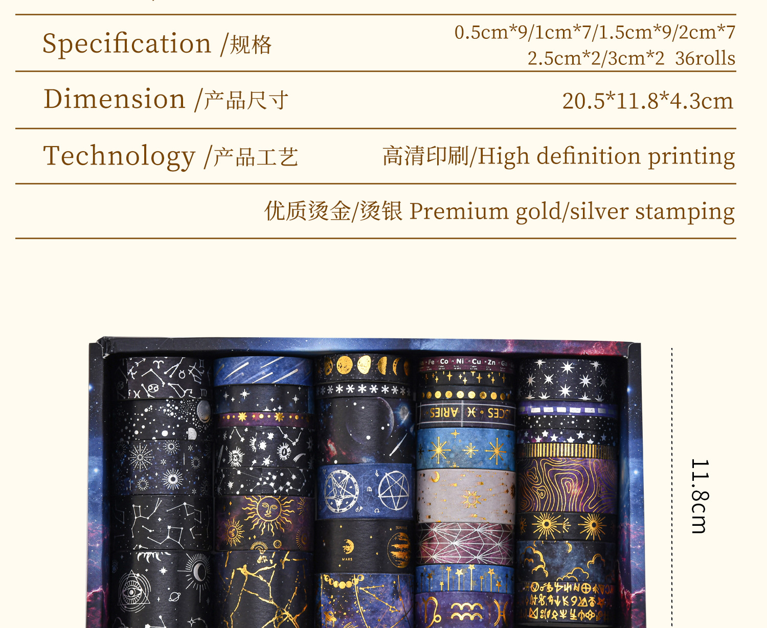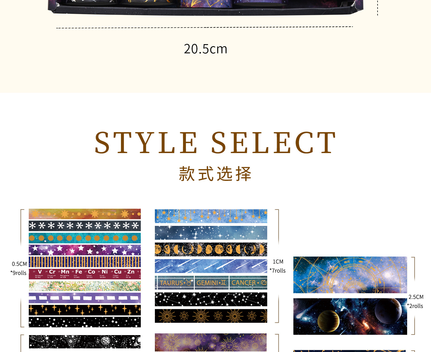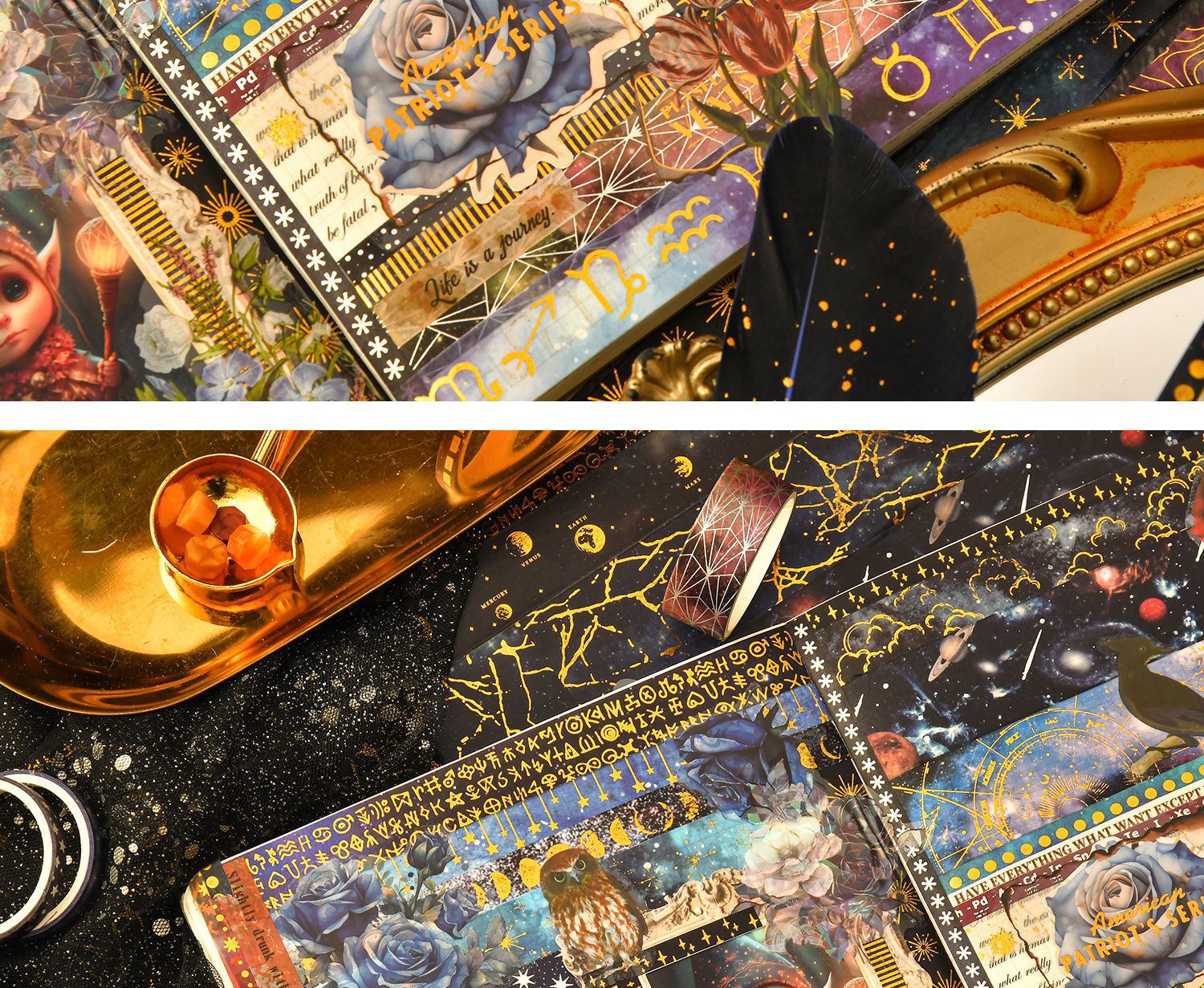 広大な星空と紙テープ夢幻星宇宙DIY装飾貼りかわいい箔押しと紙テープ