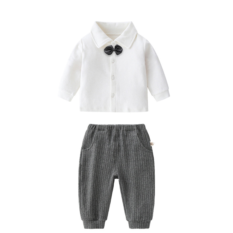 男の子の1歳の誕生日服、ベビー秋冬フォーマルスーツ、英国風ベビーパンツ、紳士風裏起毛シャツのツーピースセット