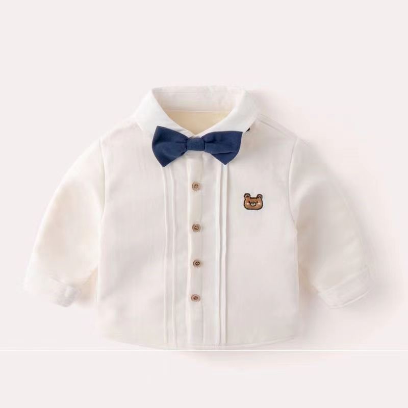 男宝宝白衬衫2025冬季英伦风衬衫婴儿长袖衬礼服婴儿加绒衬衫洋气