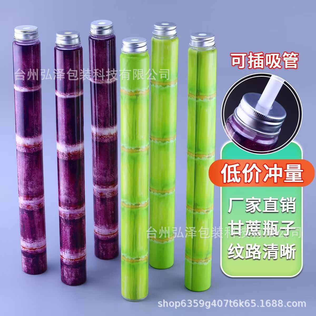 甘蔗瓶竹子奶茶瓶饮料瓶小红书同款塑料瓶外带竹节细长果汁pet