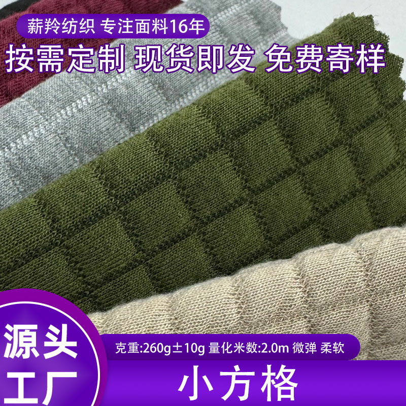 厂家供应跨境190门幅宽小方格几何方块提花面料卫衣套装针织面料