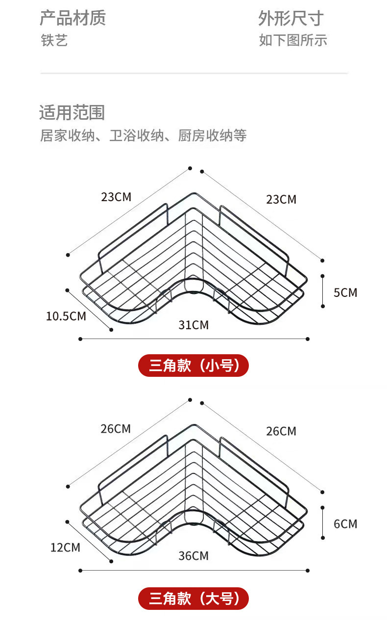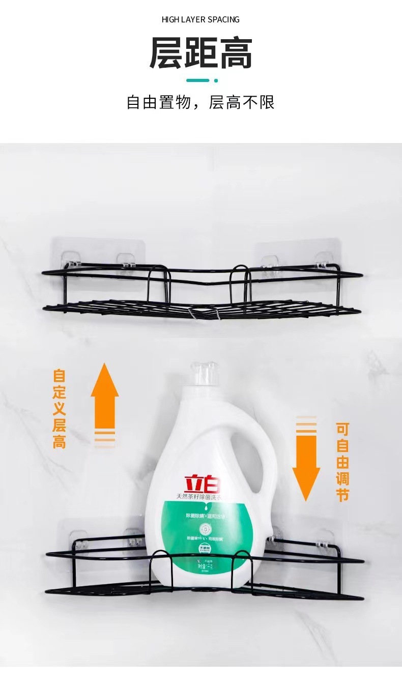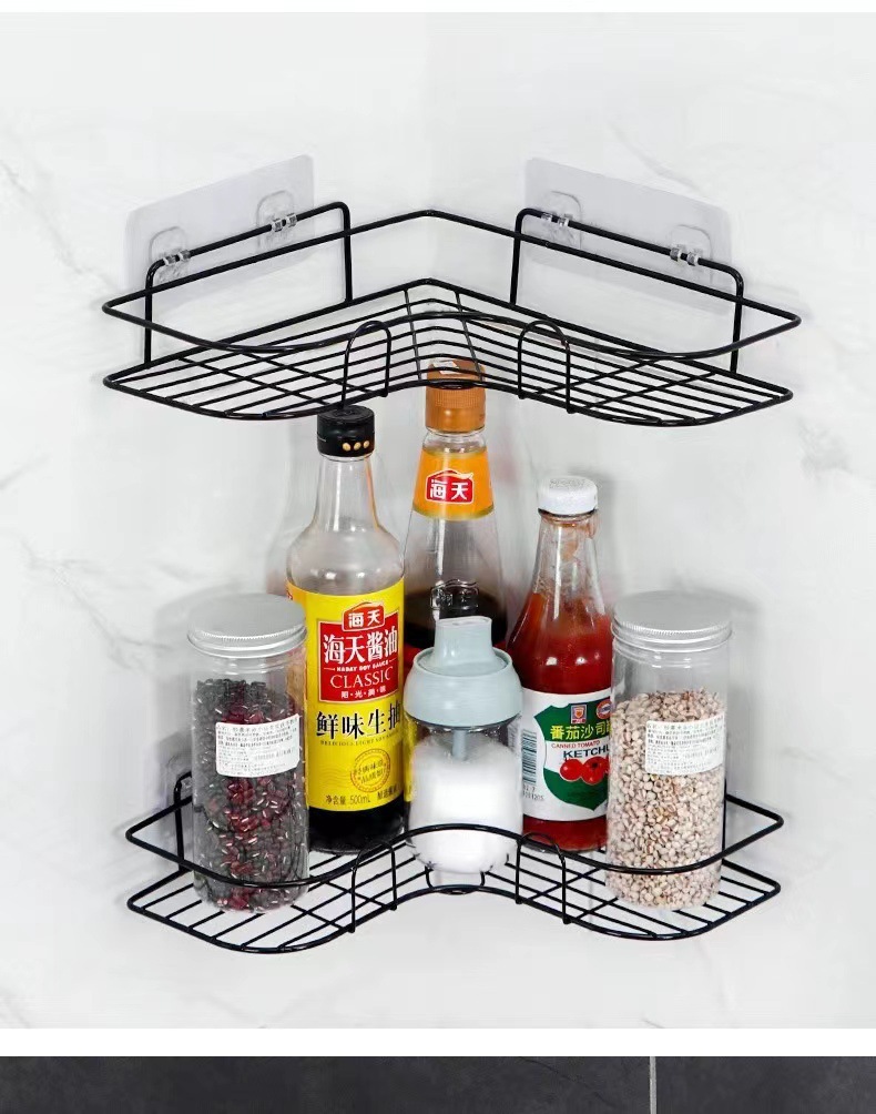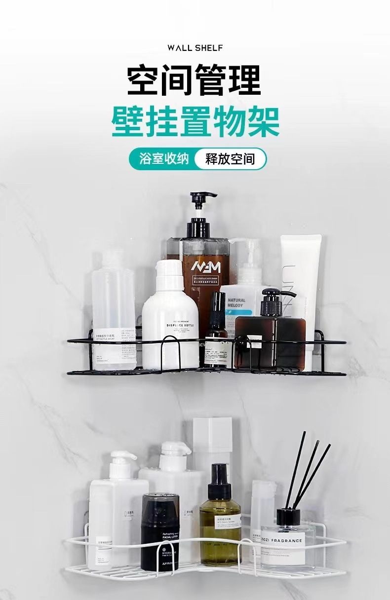メーカー卸売り鉄芸三角コーナーフレーム家庭用浴室穴なし収納ラック壁掛け式浴室ラック